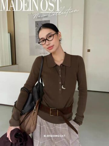 B5283 เสื้อไหมพรมคอปกลายทาง