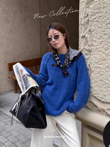 B5300 เสื้อไหมพรมแคชเมียร์ทอห่าง+ผ้าพันคอ