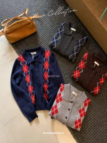 B5304 คาดิแกนคอปกลายข้าวหลามตัด มี 4 สี