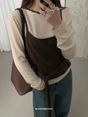 B5305 เสื้อไหมพรมคอกลม สายเดียวตัวนอก(ติดกัน) มี 2 สี
