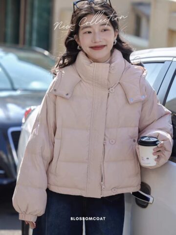 B4147 เสื้อขนเป็ดหนัง ทรงครอป MORNCOME มี 3 สี