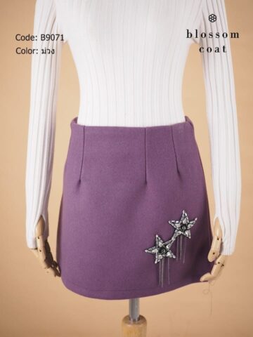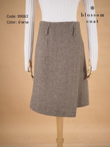 B9070 กระโปรงผ้าทวีต สีกรมท่าครีม