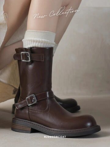 A5196 บูทปลอกขาหนัง มีเข็มขัด2เส้น