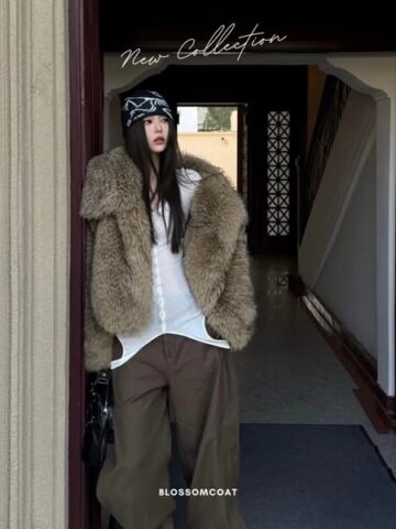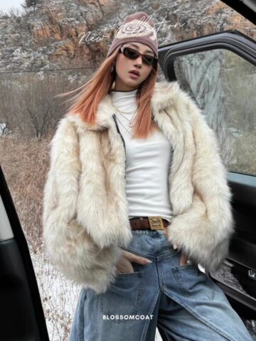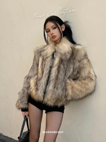 B8132 เสื้อเฟอร์สั้นคอปกใหญ่
