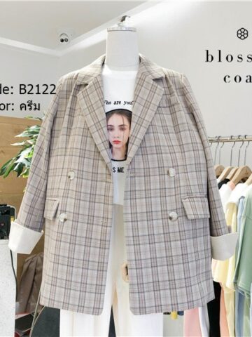 B3084 แจ็คเก็ตผ้าขน ลายตารางใหญ่