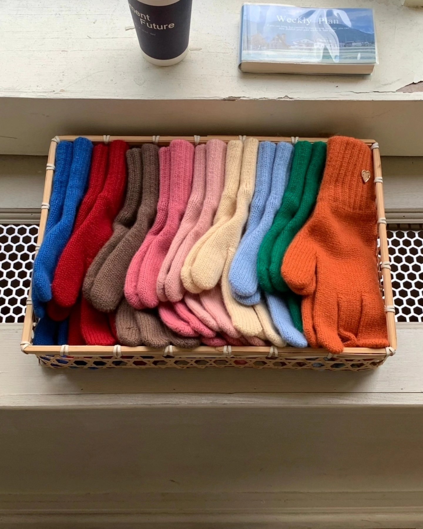 A1010 ถุงมือผ้าแคชเมียร์ 9สี มีปักหัวใจ