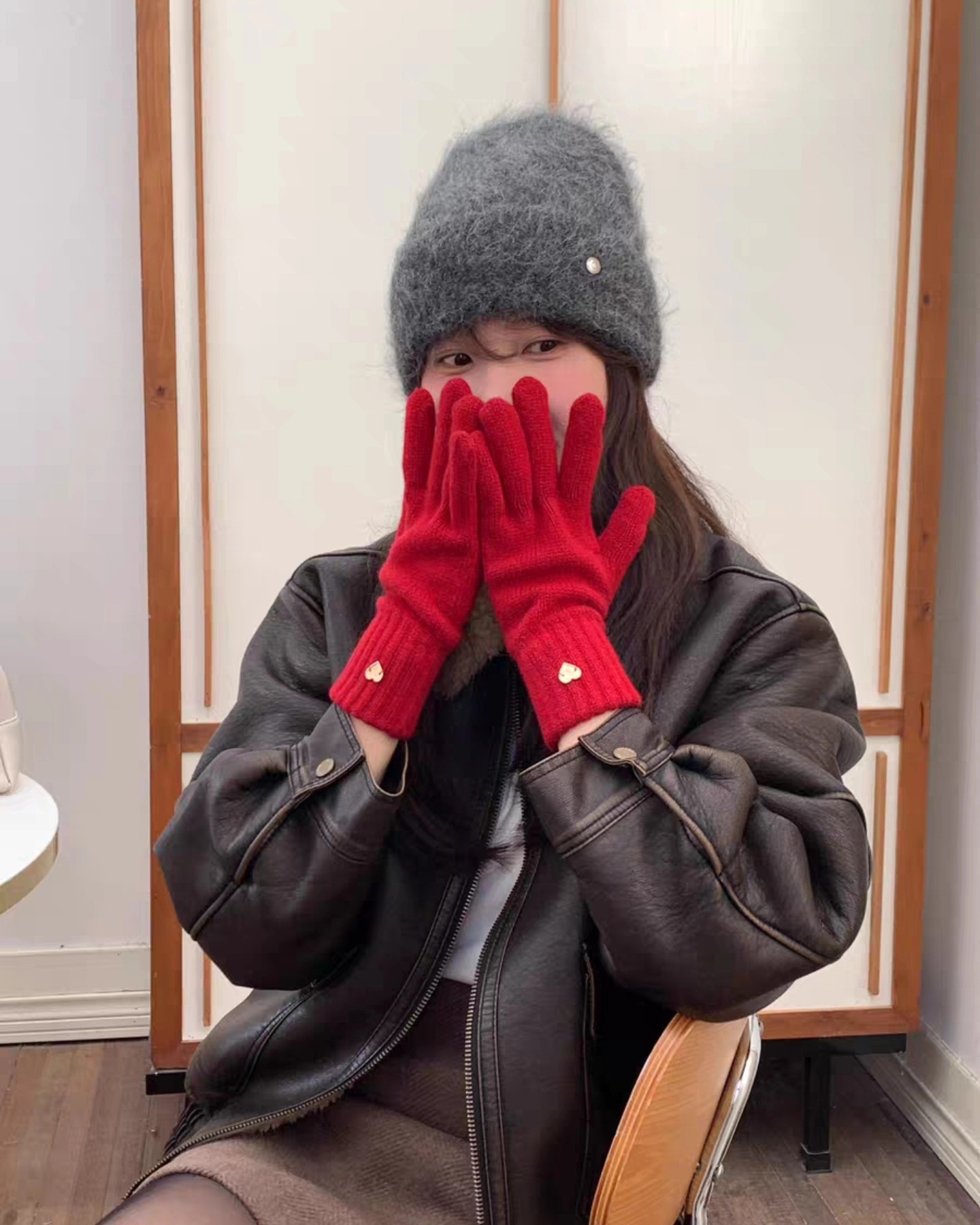 / A1010 ถุงมือผ้าแคชเมียร์ 9สี มีปักหัวใจ