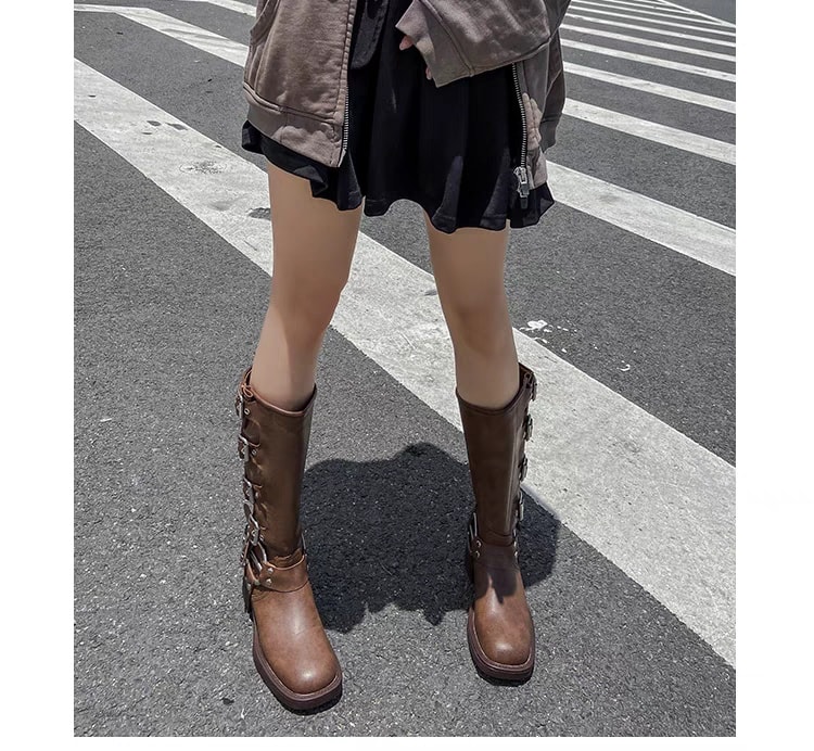 รองเท้าบูททรงคาวบอย มีลูกเล่นเข็มขัด