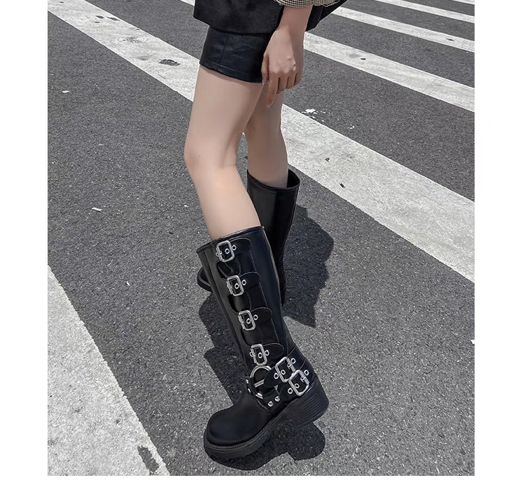 A5124 รองเท้าบูททรงคาวบอย มีลูกเล่นเข็มขัด มี 2 สี