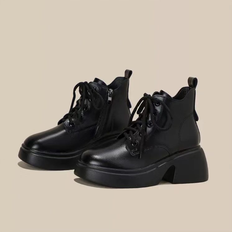 A5140 บูทส้นหนา เข็มขัดหลอก มีซิป มี 2 สี