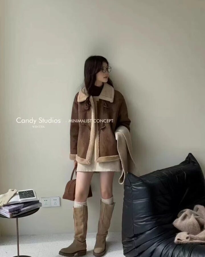 B1258 โค้ทขอบเสื้อขนนิ่ม กระดุมเขี้ยว