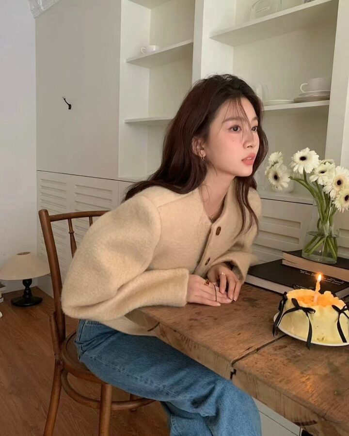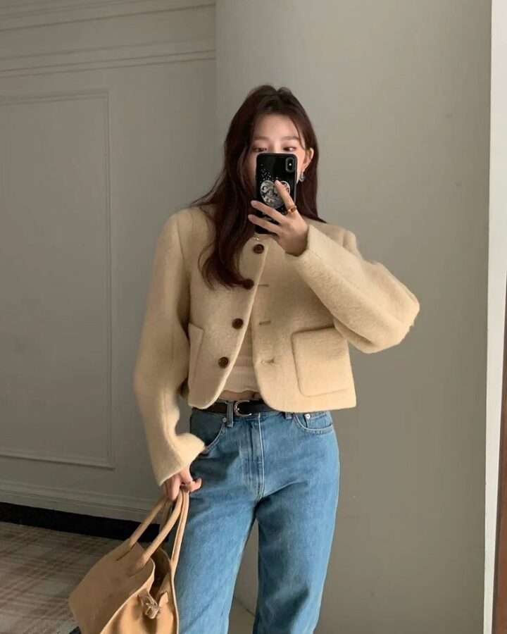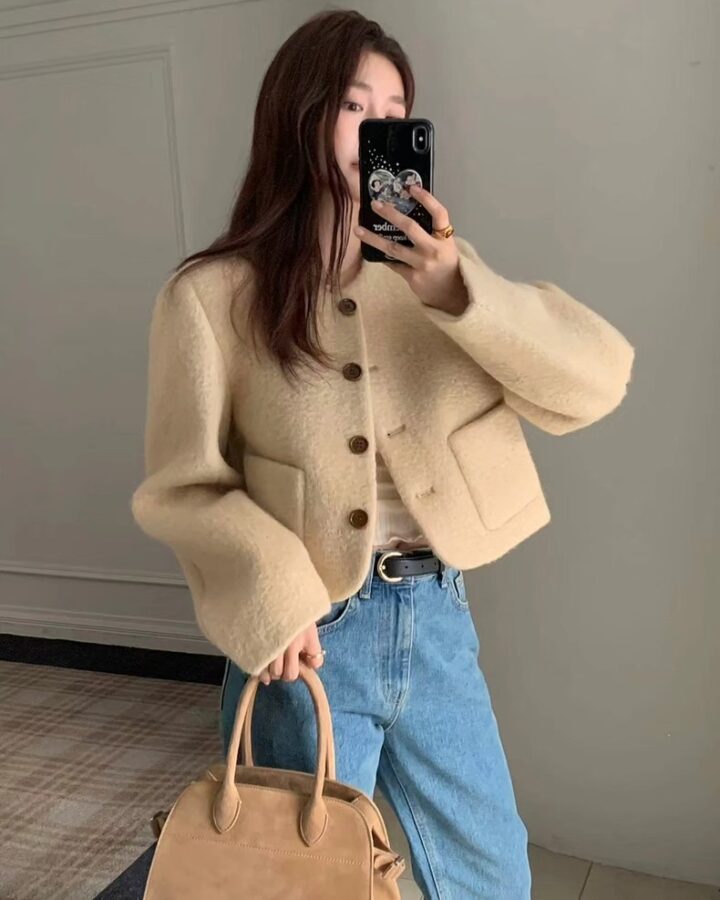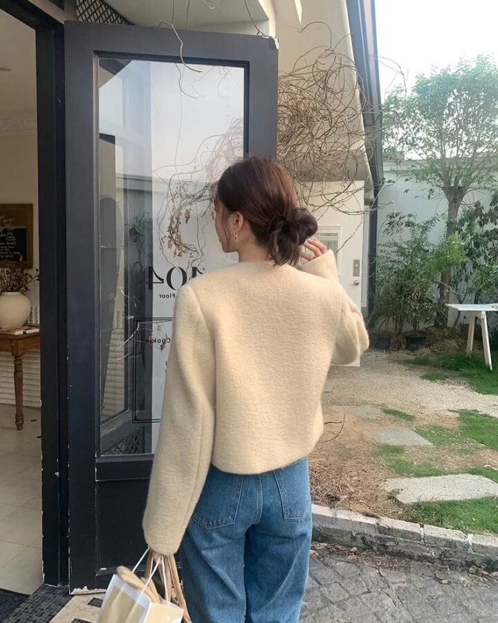 B1264 เสื้อโค้ทสั้นผ้าวูลขนๆ มี 2 สี