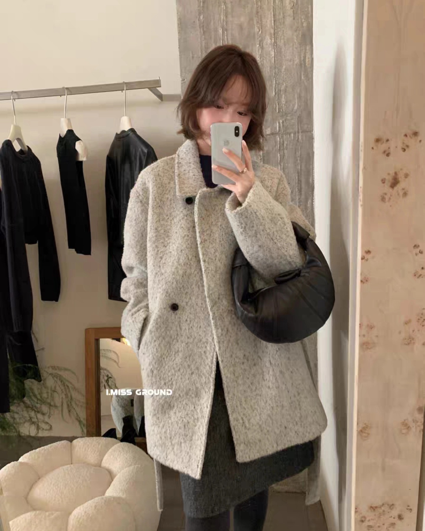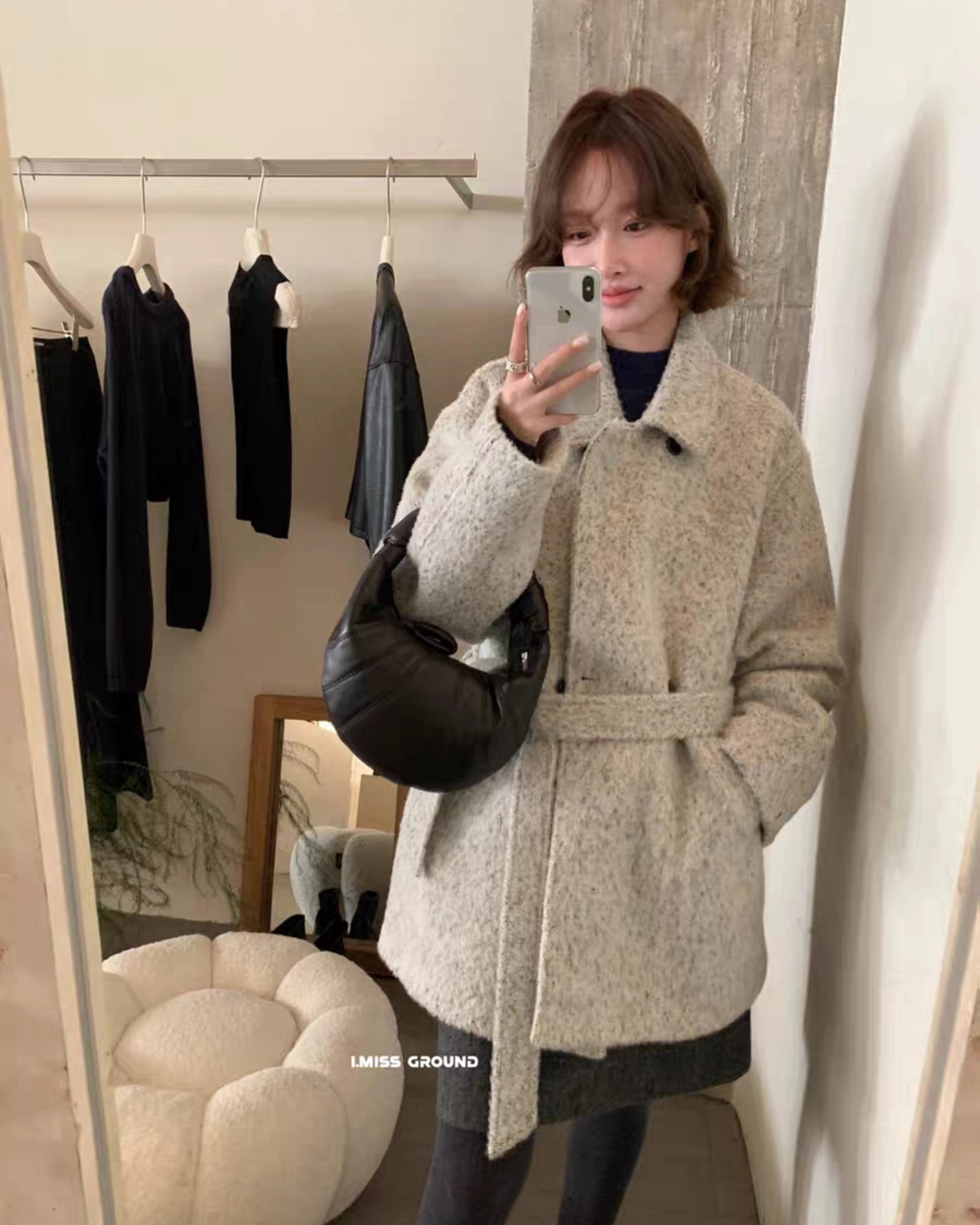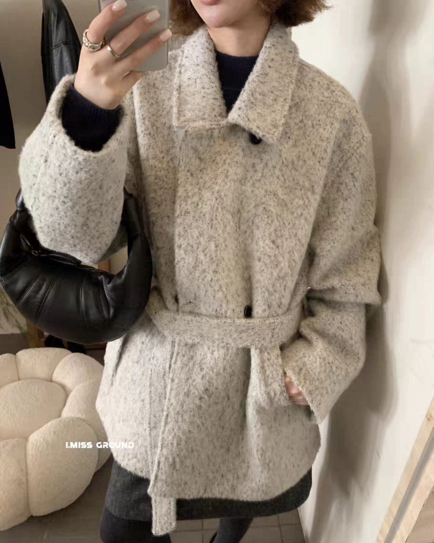 B1293 โค้ทผ้าขนมีสายคาด