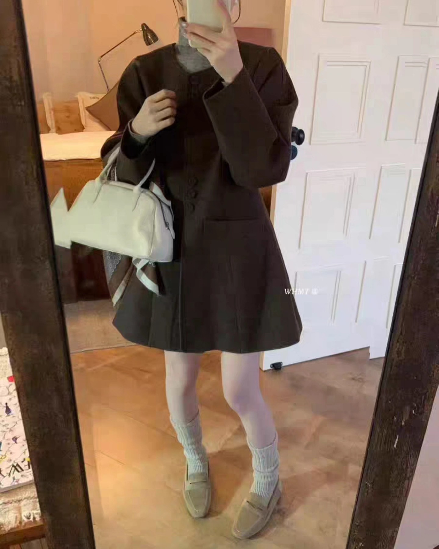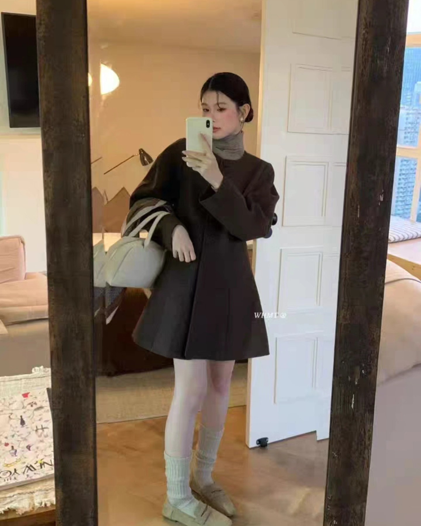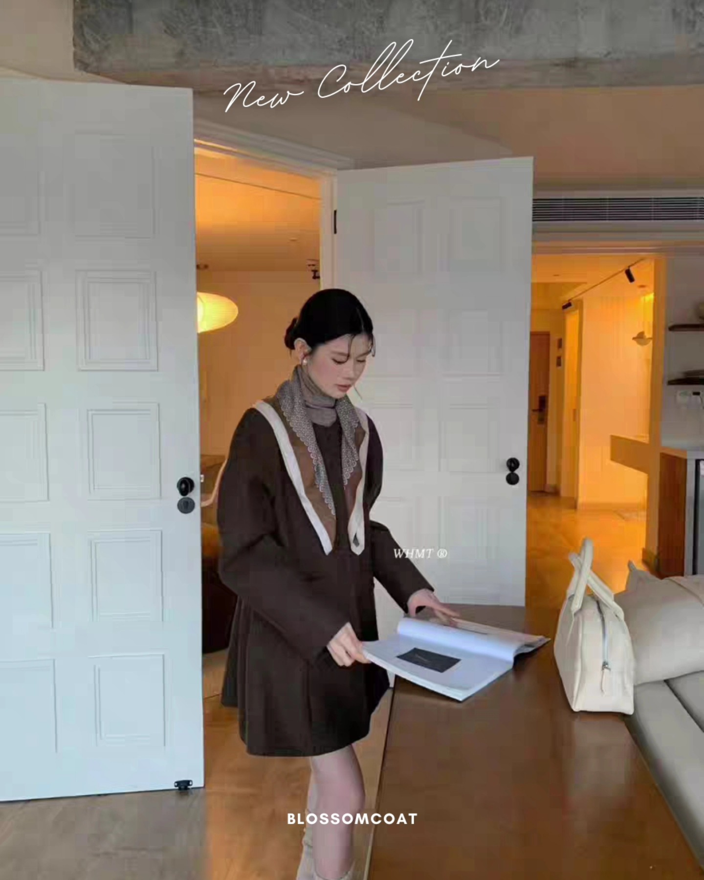 B1296 โค้ทสั้นทรงเดรส+ผ้าพันคอ