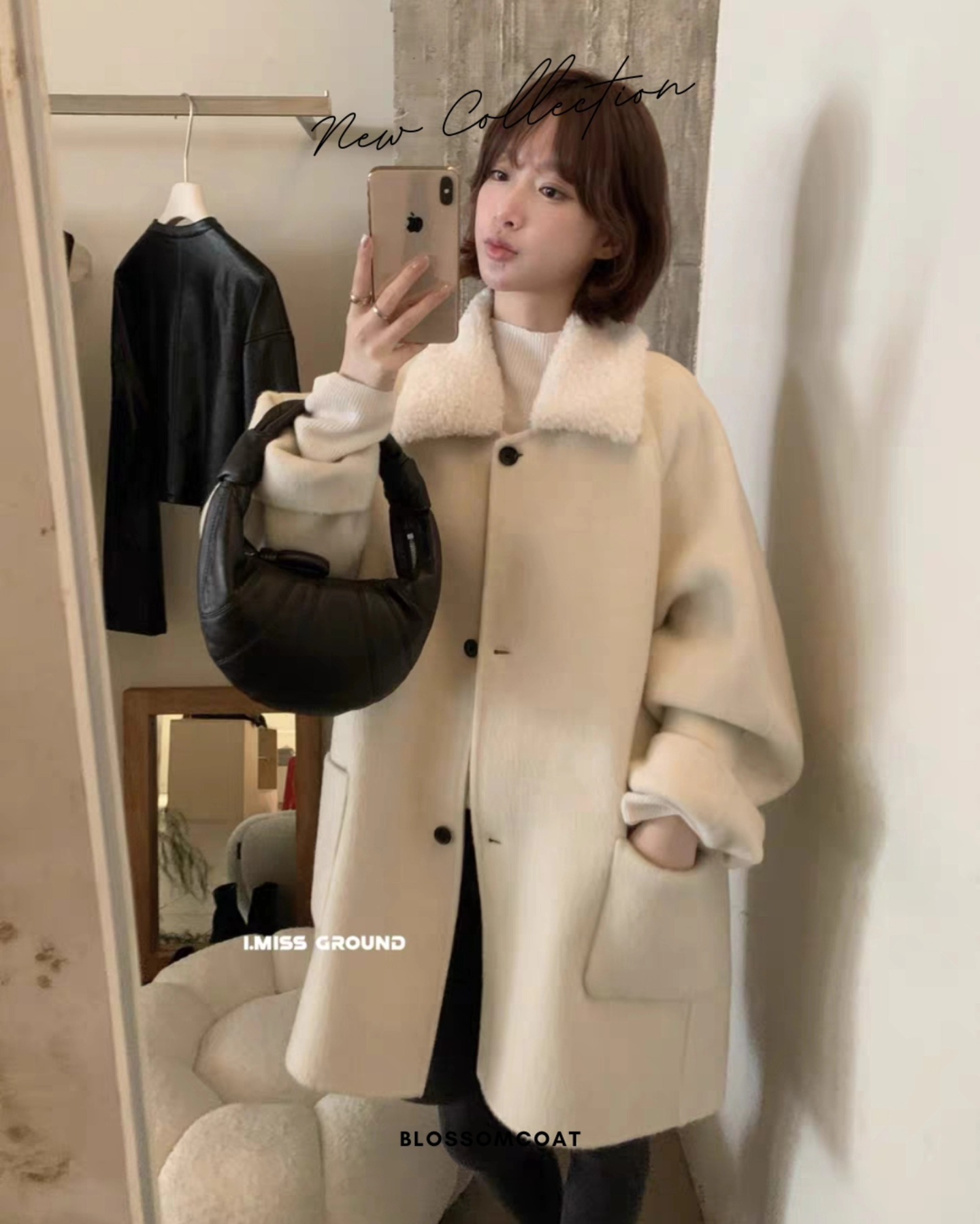 B1304 โค้ทผ้าวูล คอปก มีปก