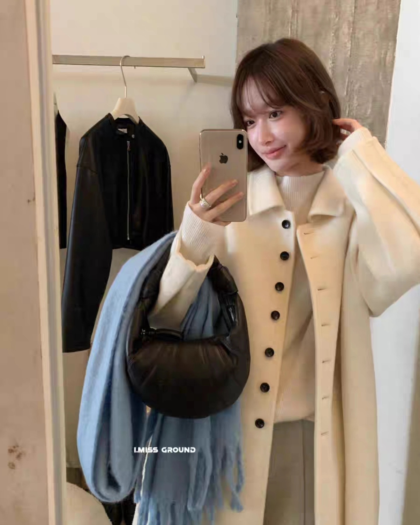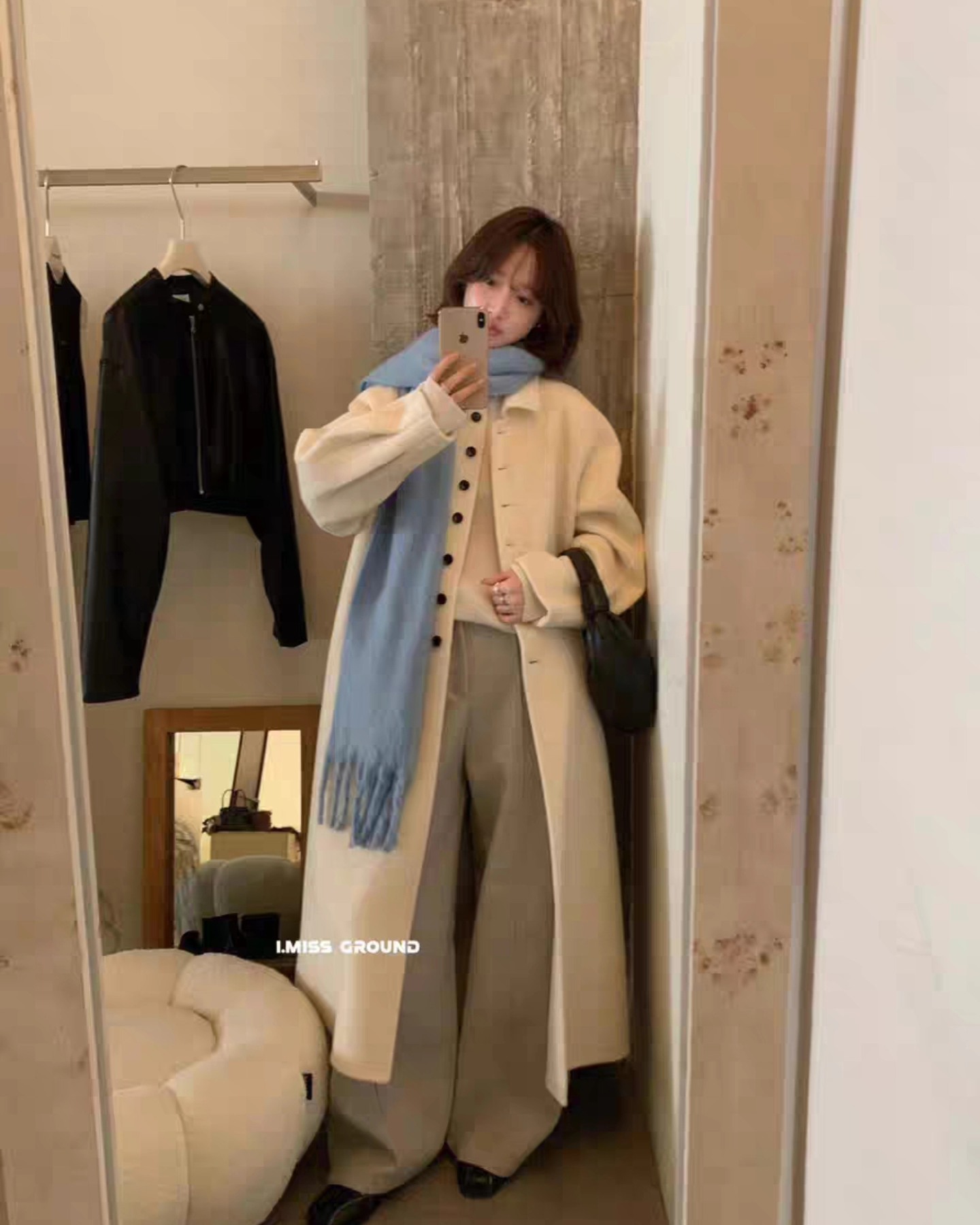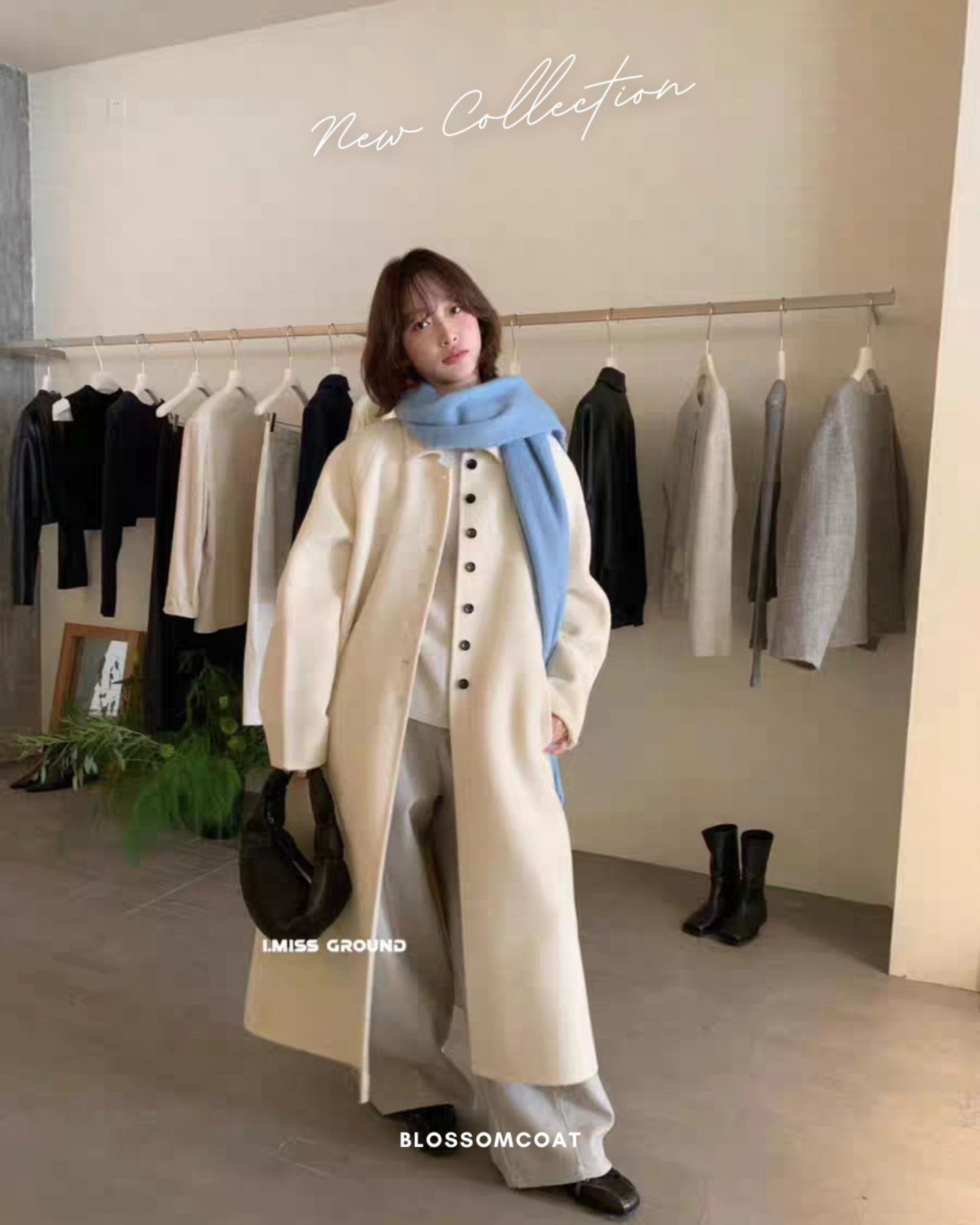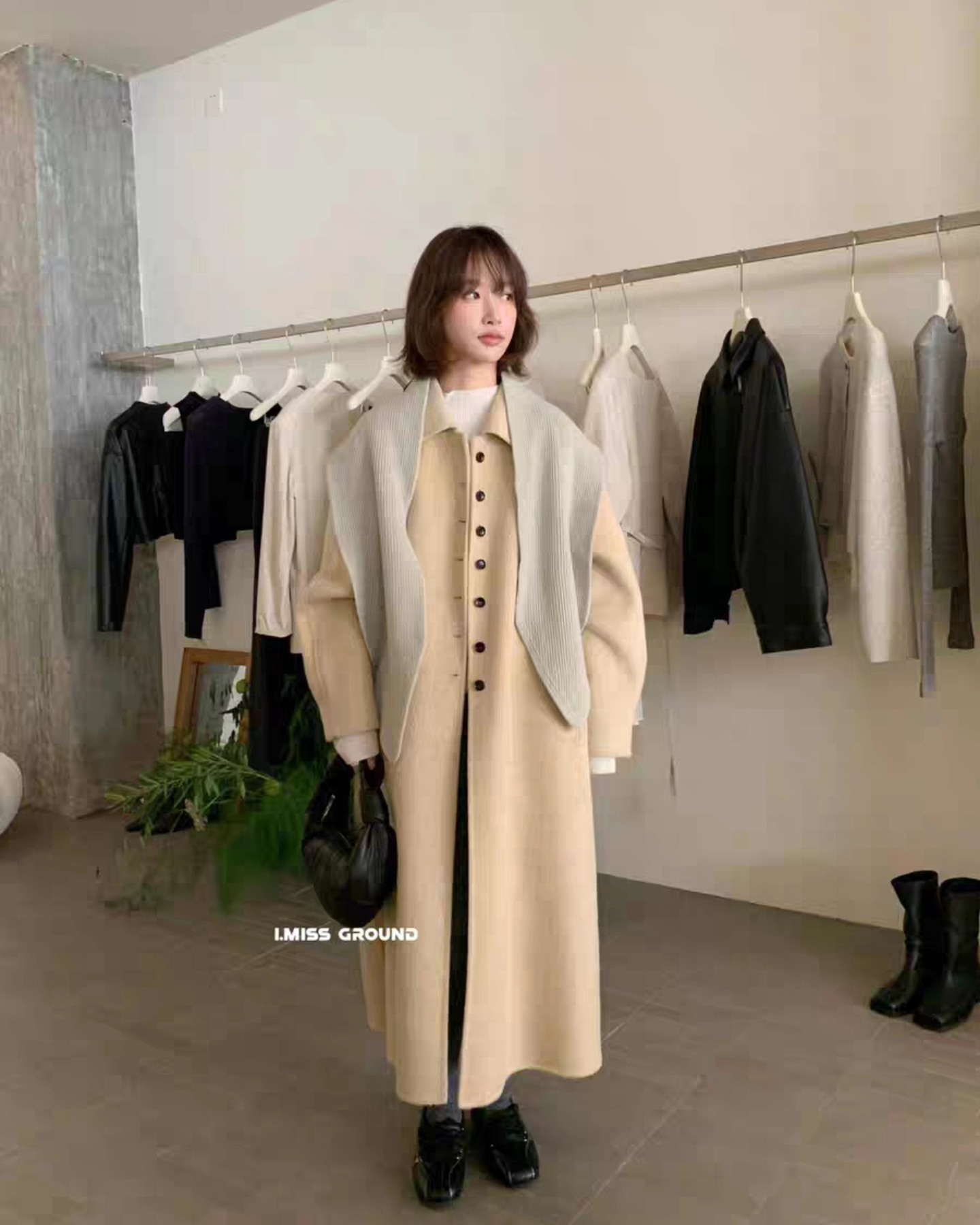 B1307 โค้ทผ้าแคชเมียตัวยาว คอปก