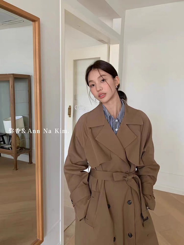 B2173 TRENCH COAT ยาว ANN NA KIM มีระบายคอ 2 ข้าง มี 3 สี