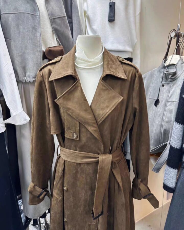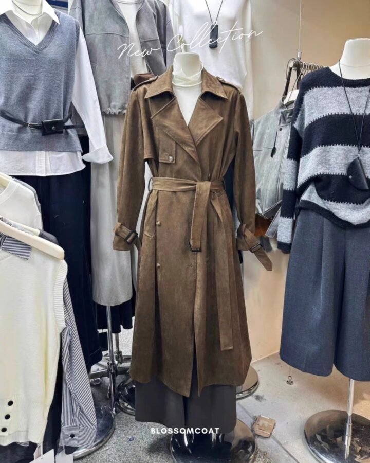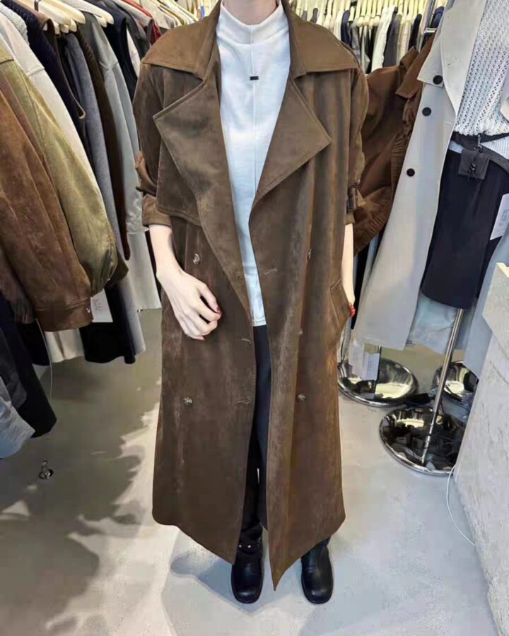 / B2211 เสื้อโค้ทยาวหนังกลับ