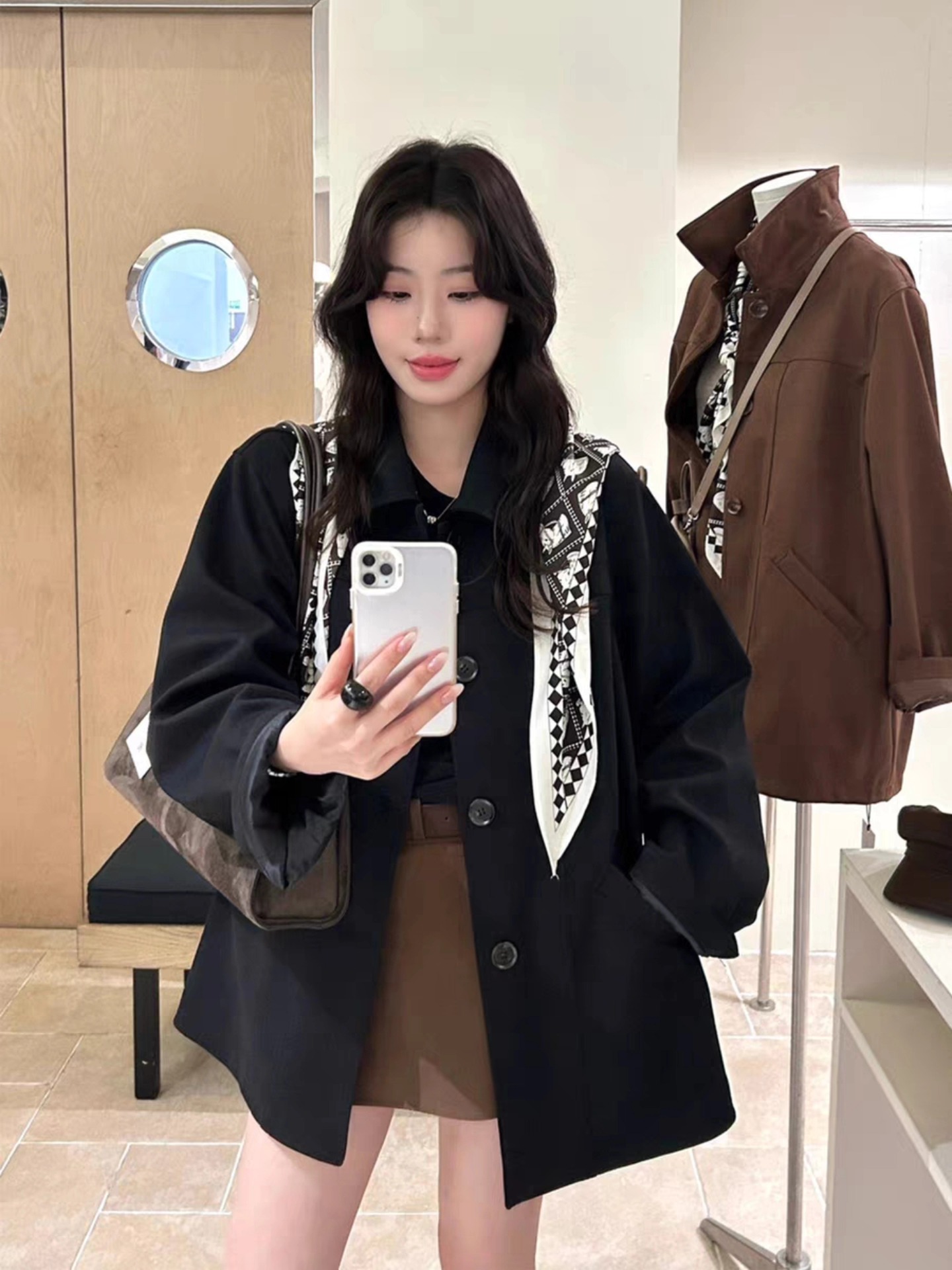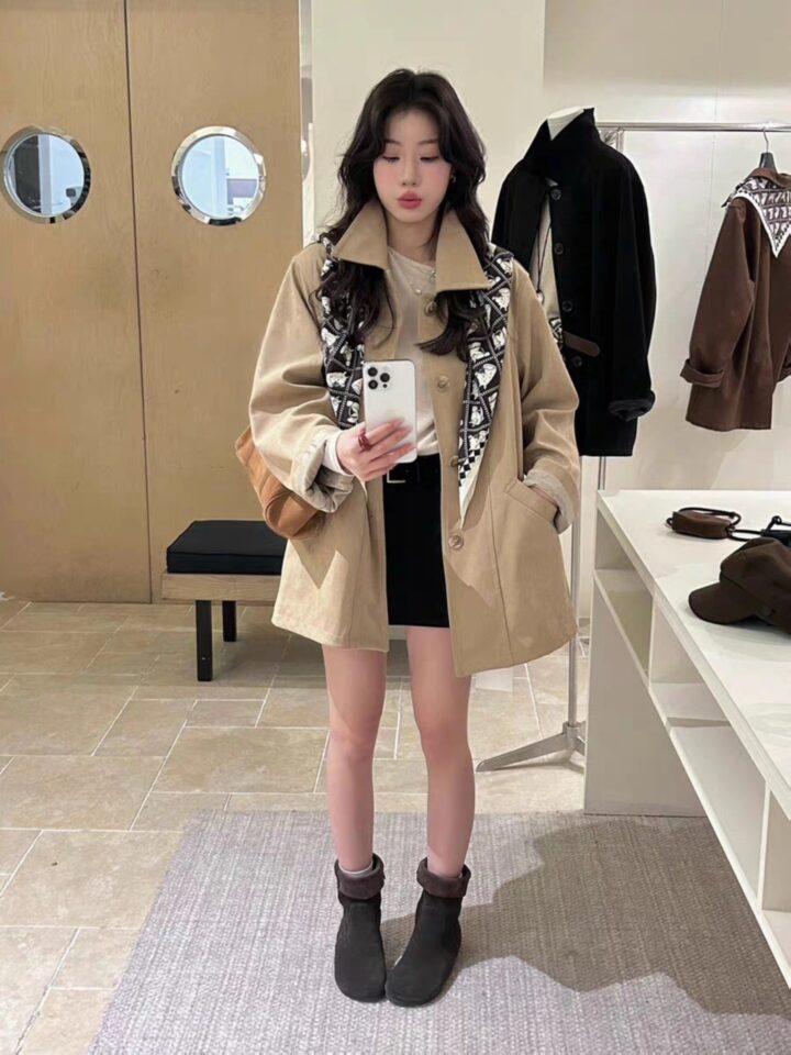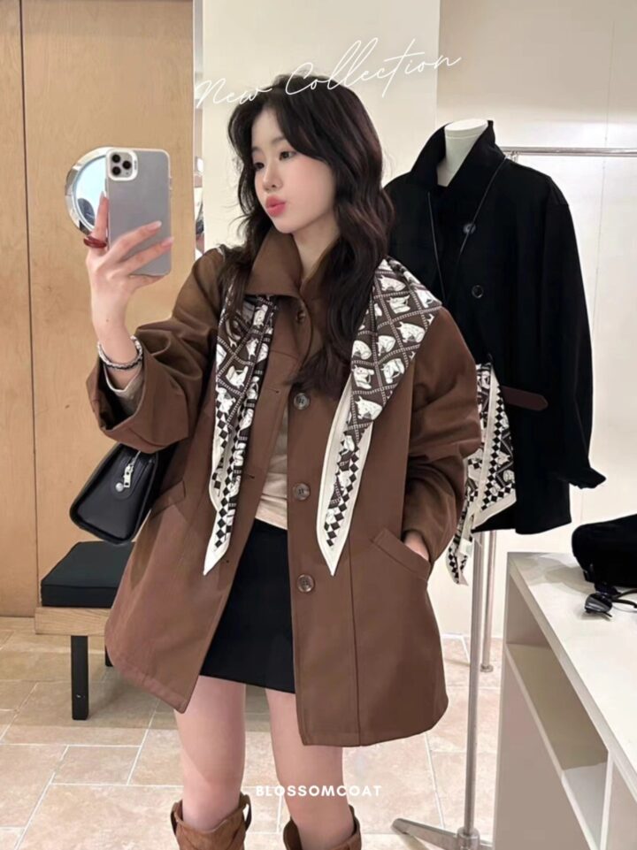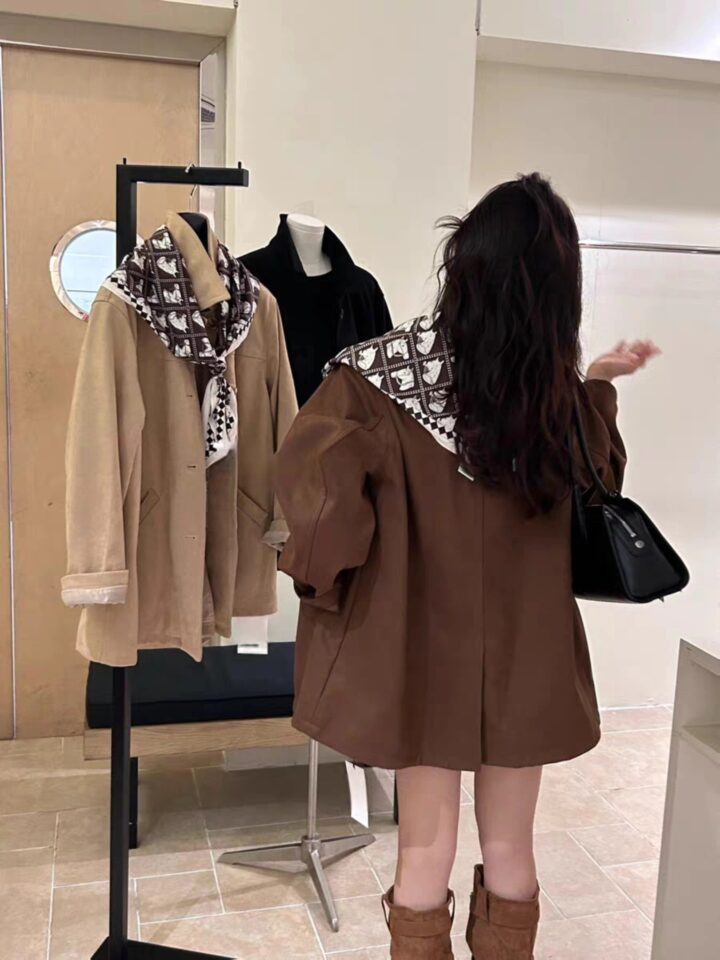 B2213 เสื้อโค้ทหนังกลับ+ผ้าพันคอ