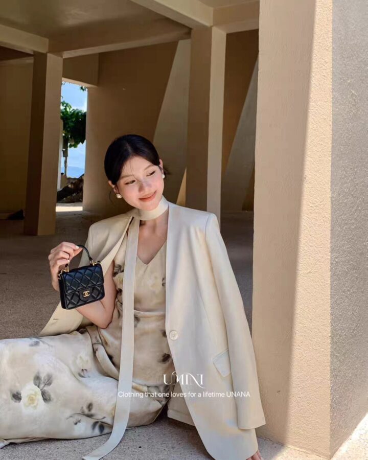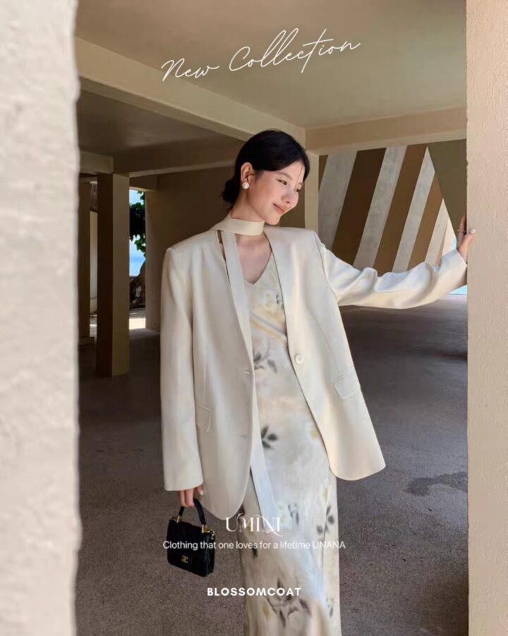 B2215 เบลเซอผ้าบาง +สายคล้องคอ มี 2 สี