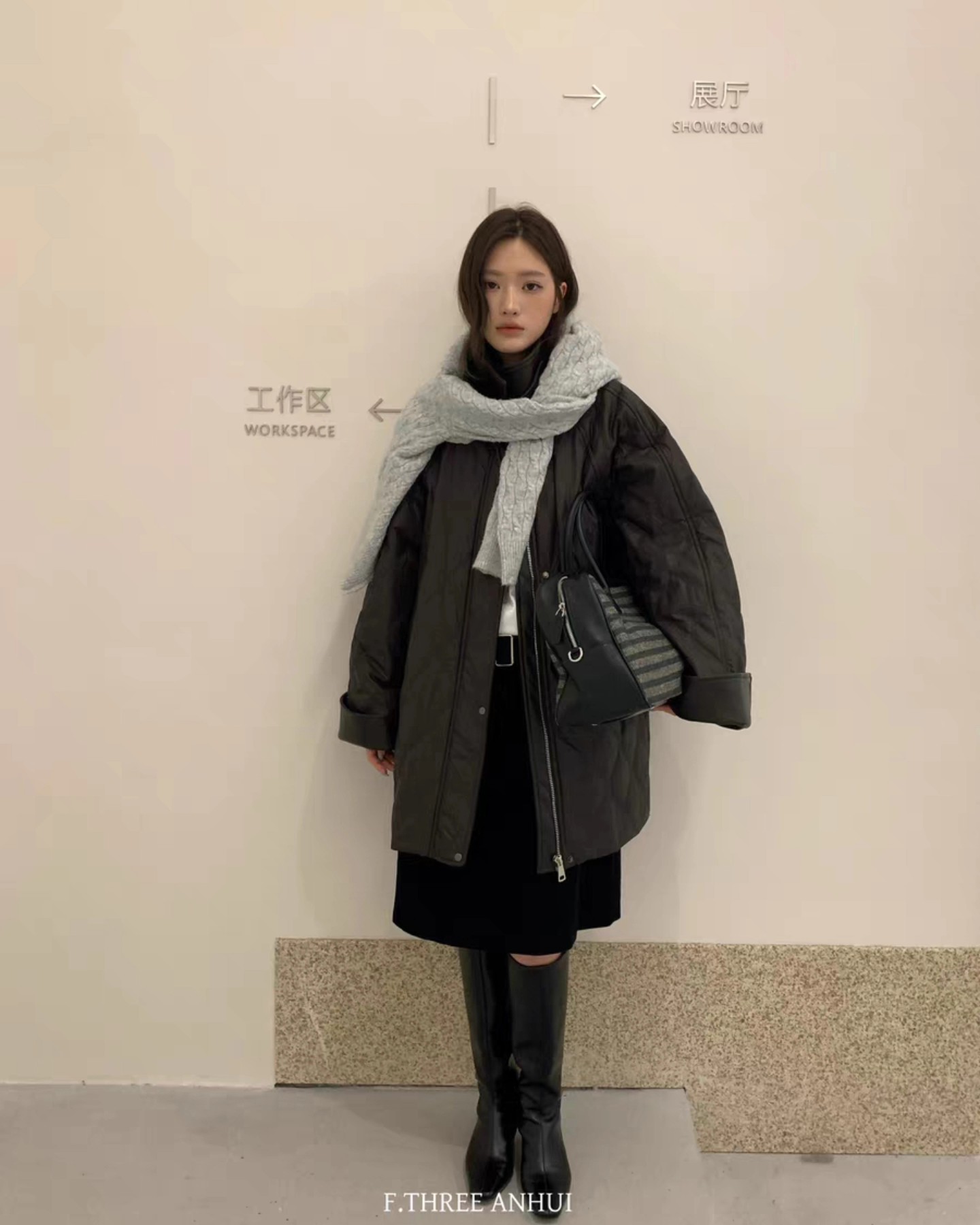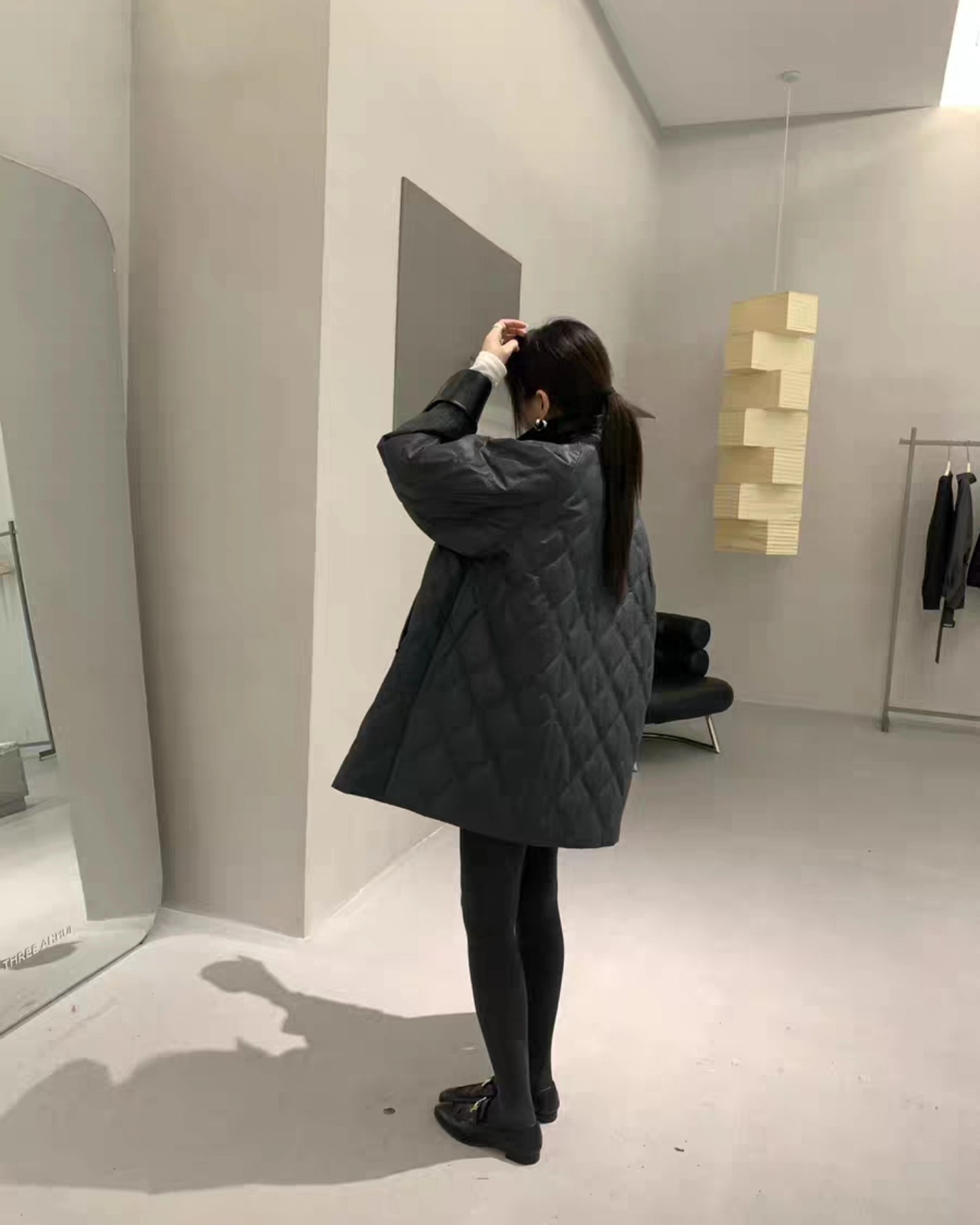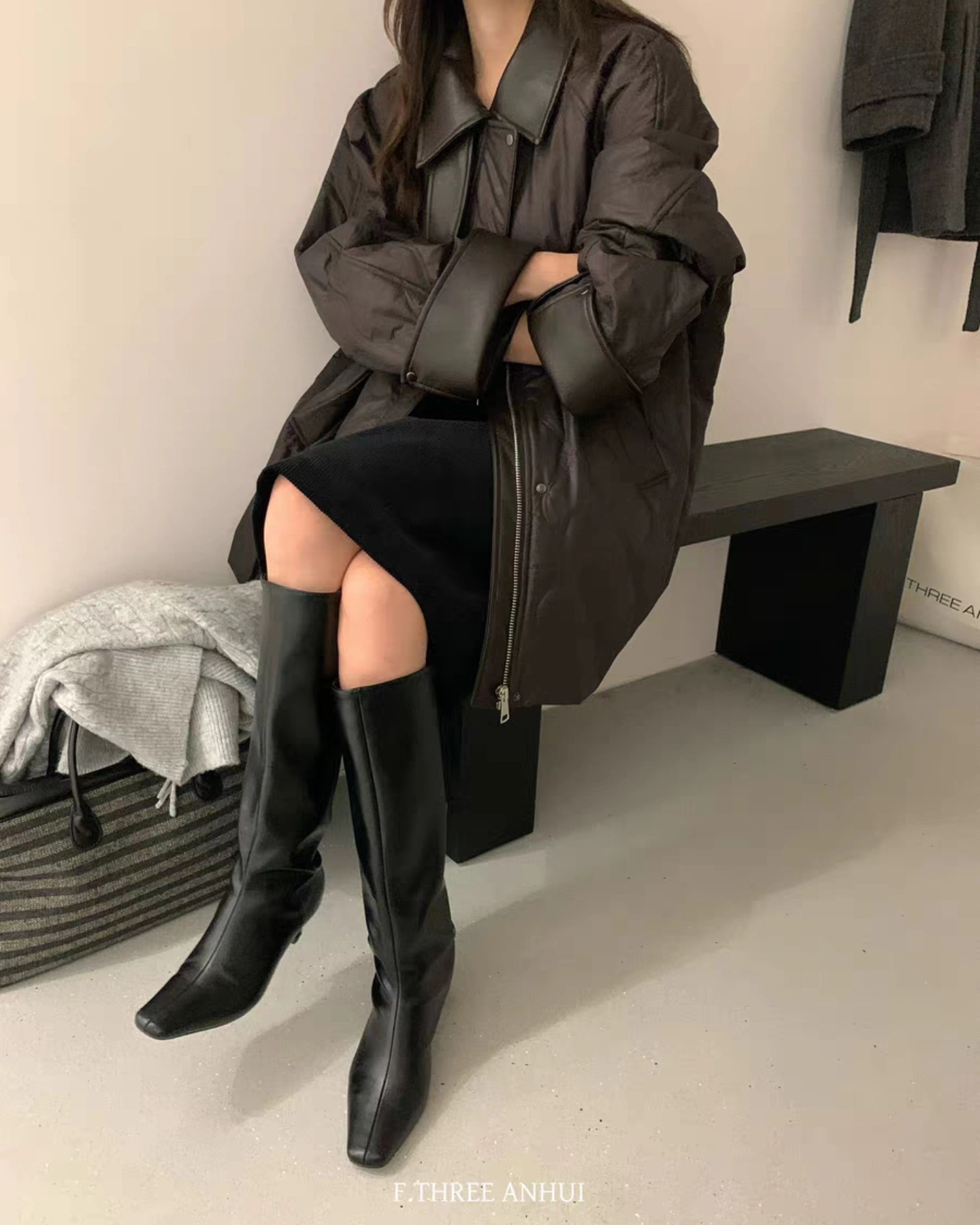 B2216 เสื้อโค้ทหนังปัก คอลูกฟูก