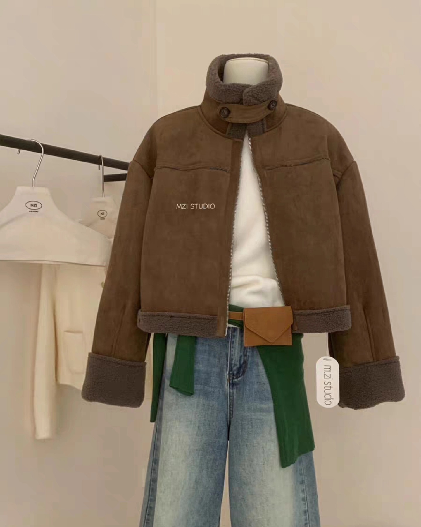 B3171 เสื้อแจคเกตครอปบุขน มี 3 สี