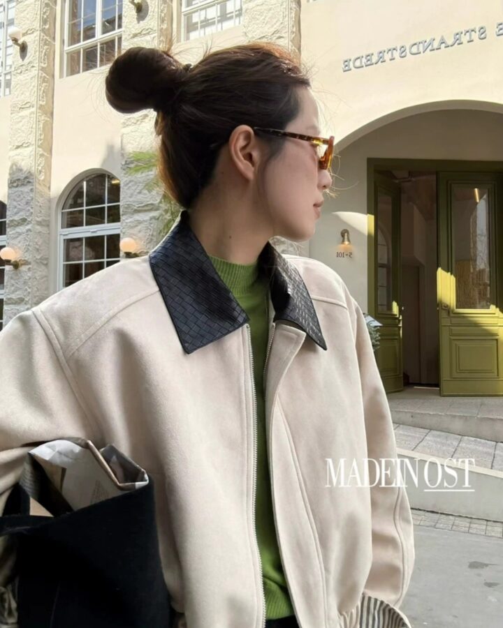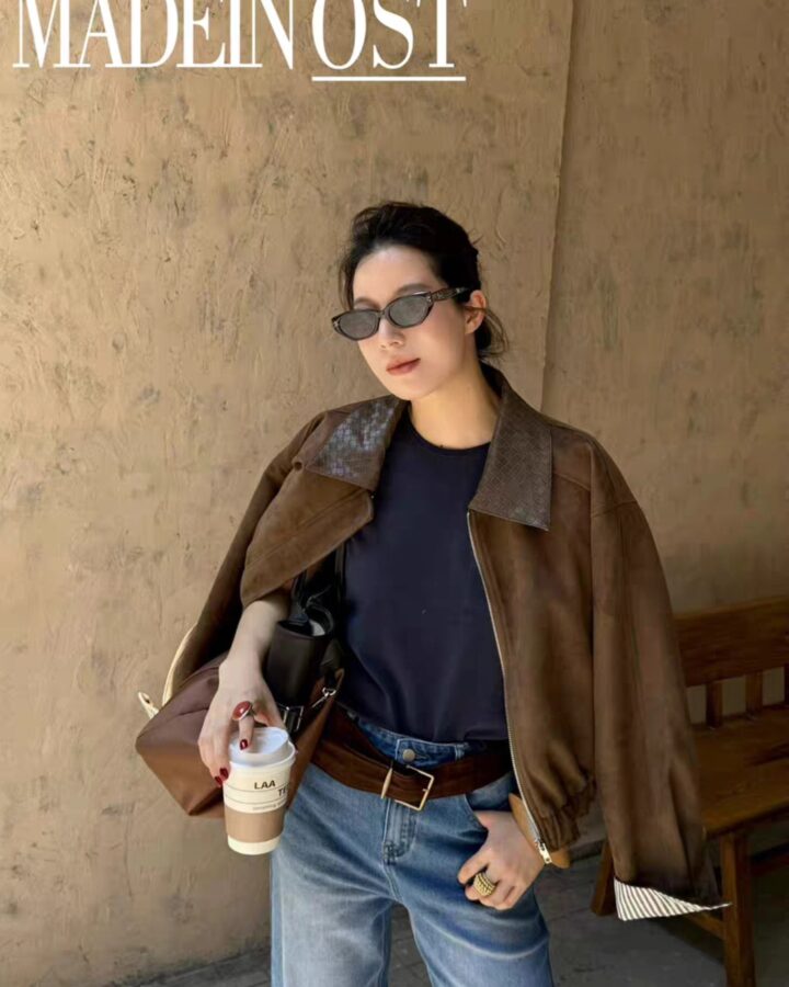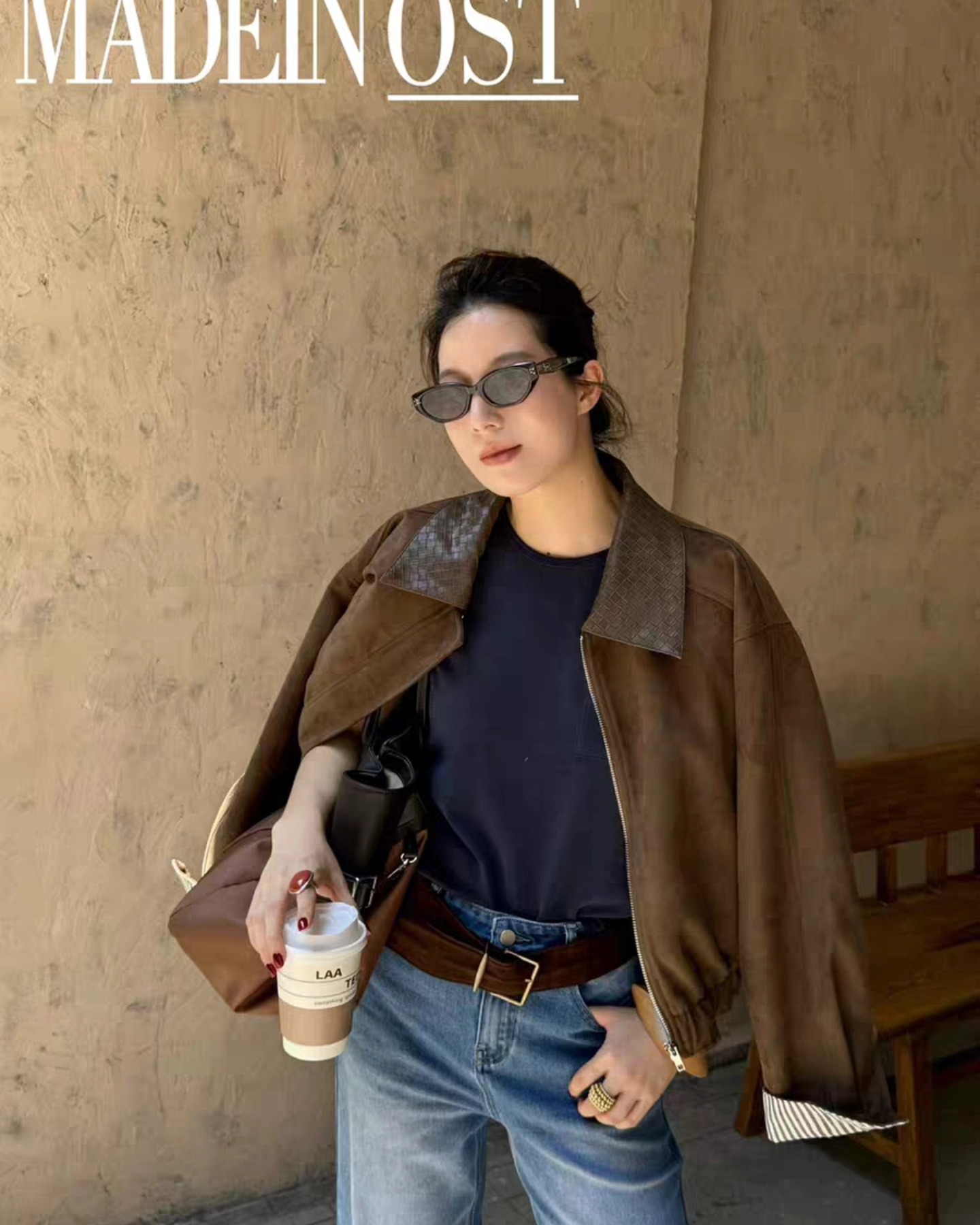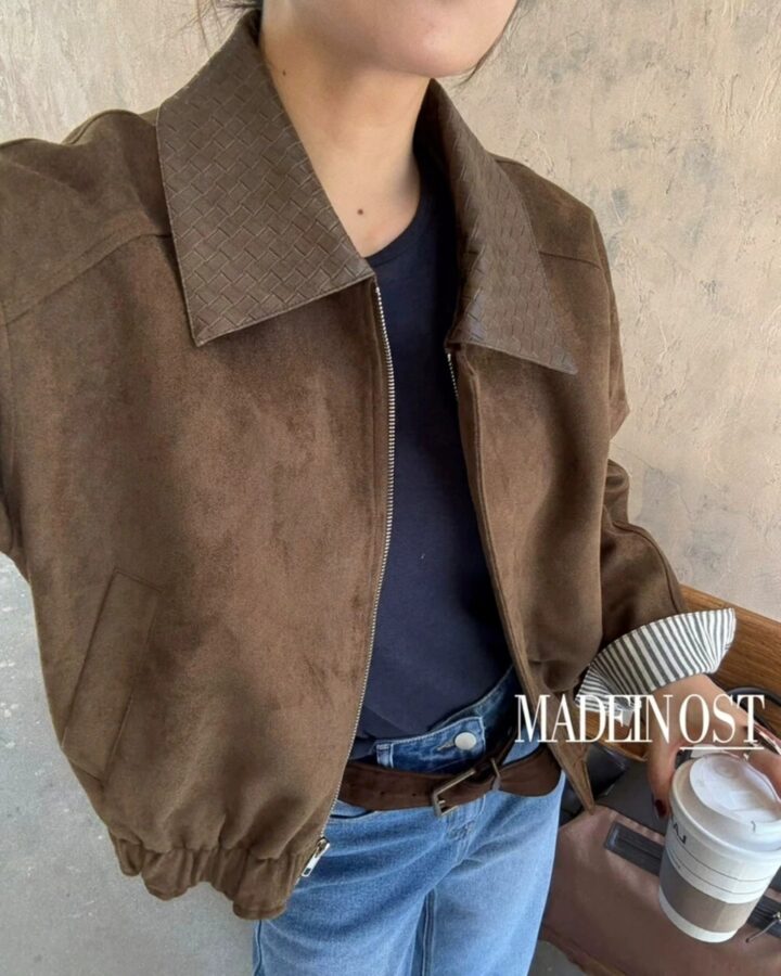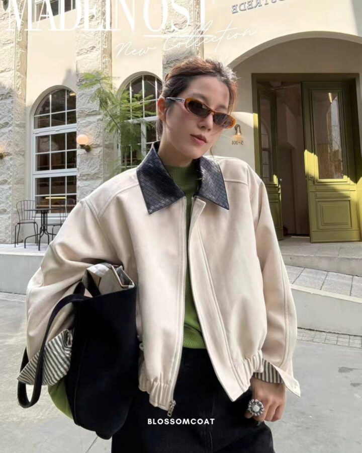 B3203 แจคเกตหนังกลับไม่บุขน ปกหนังลายตาราง มี 2 สี