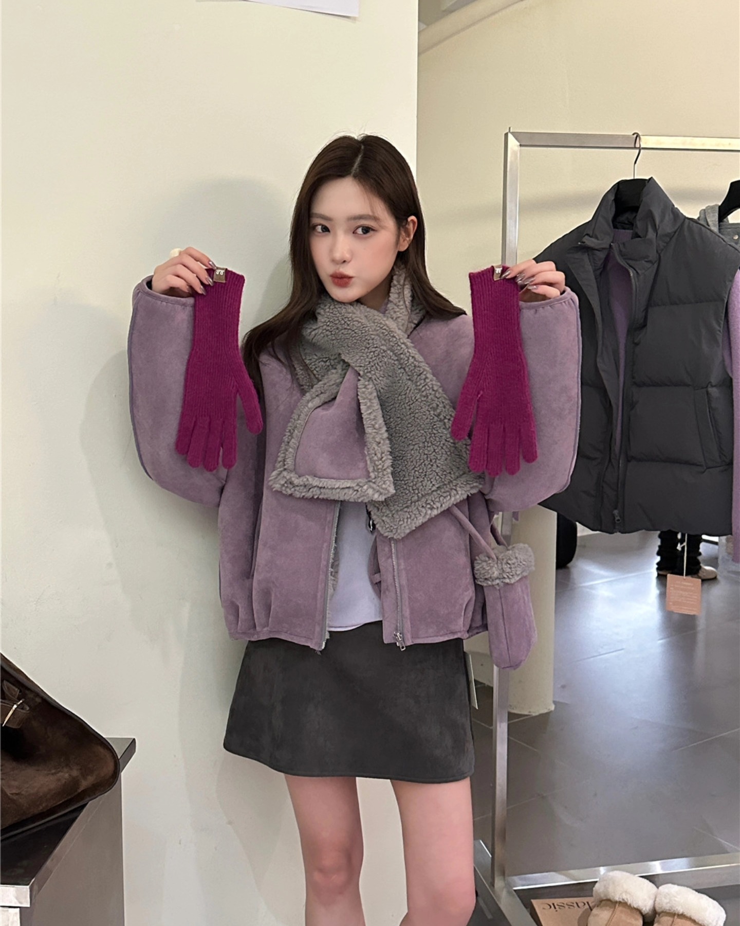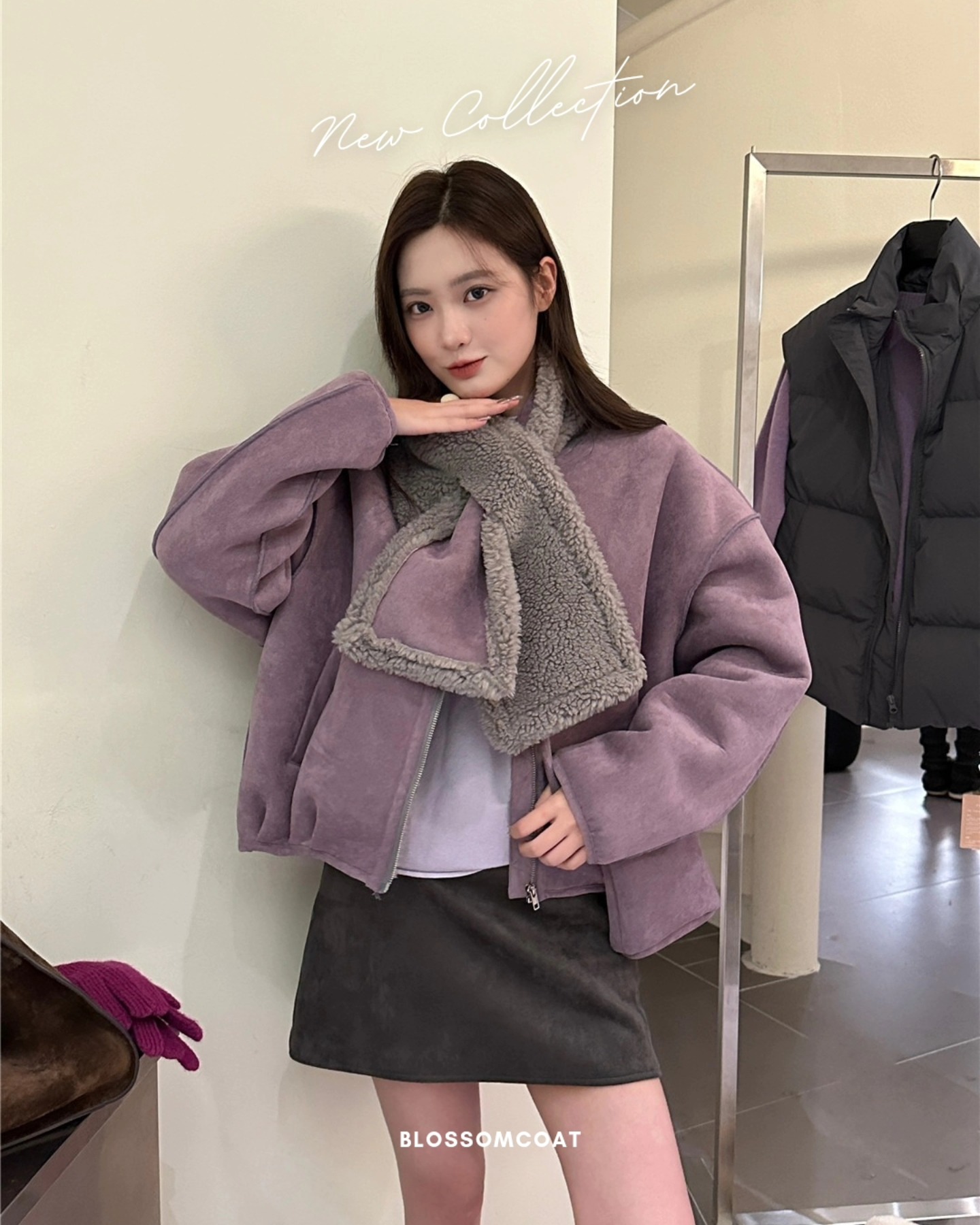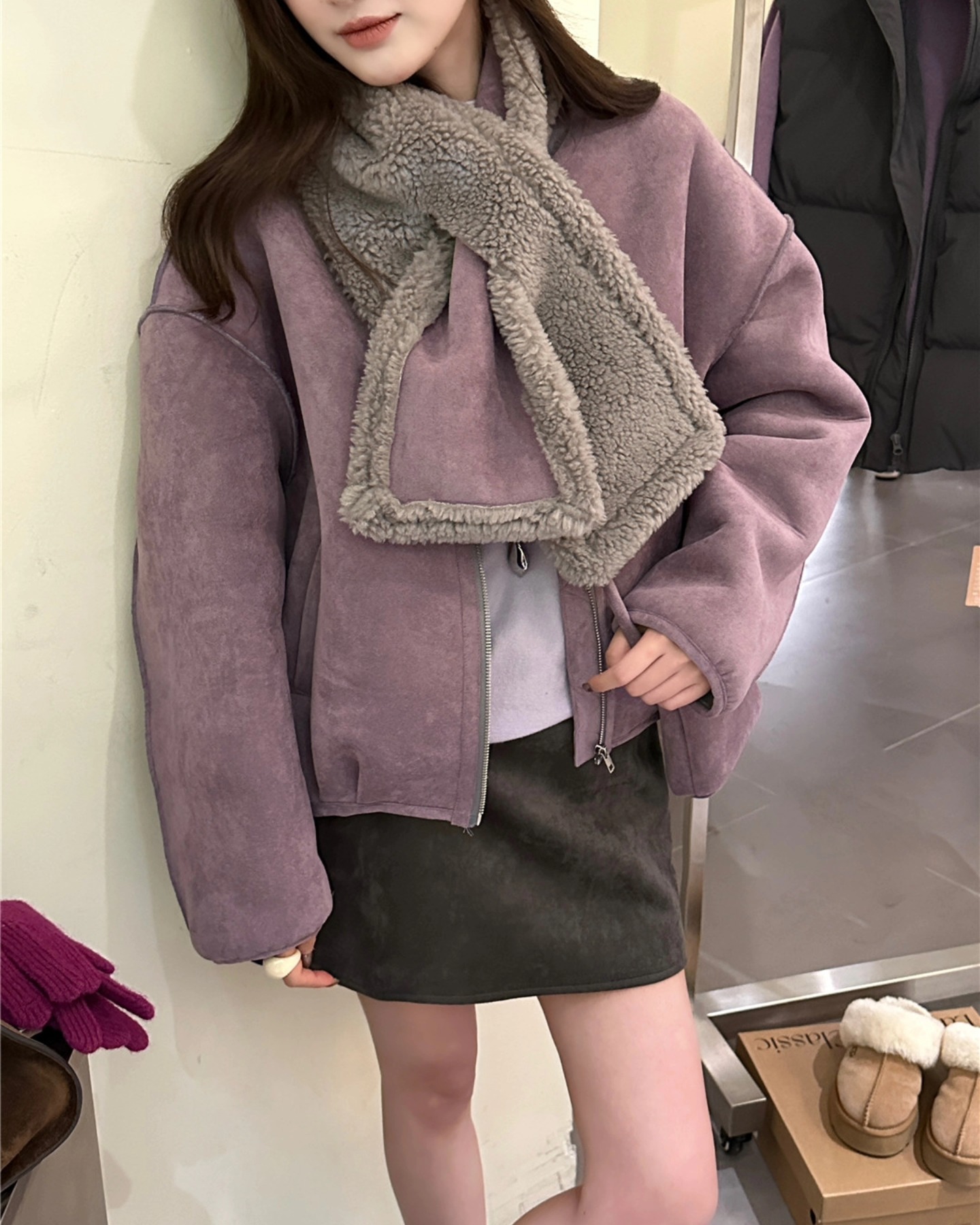B3211 เสื้อแจคเกตบุขนคอกลม+ผ้าพันคอ