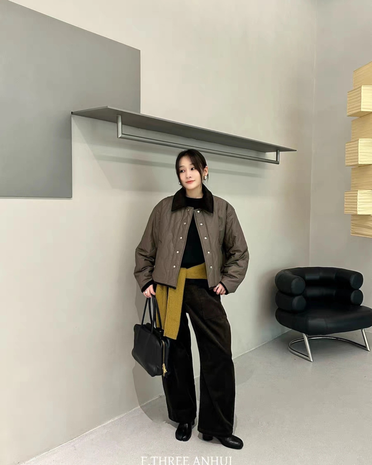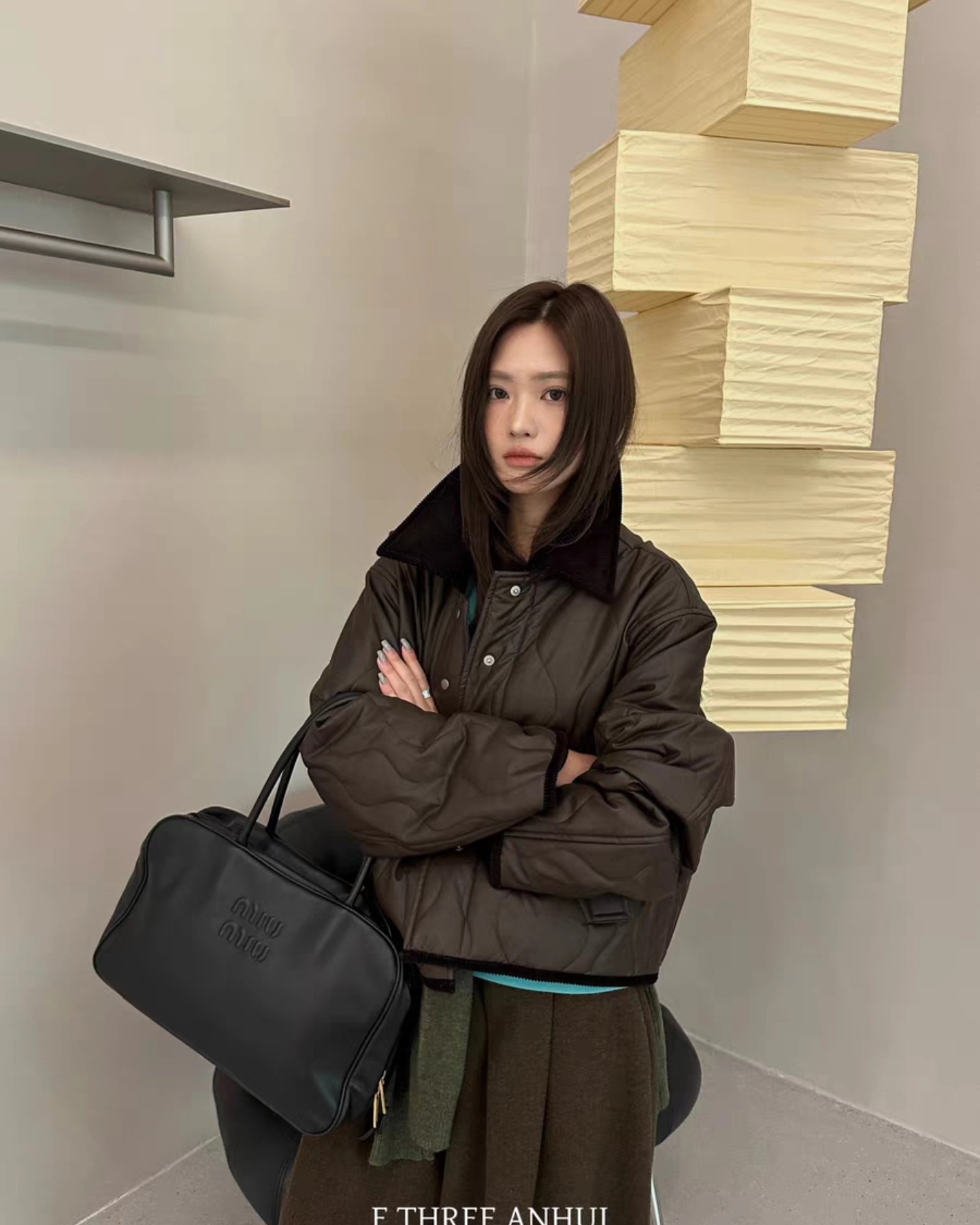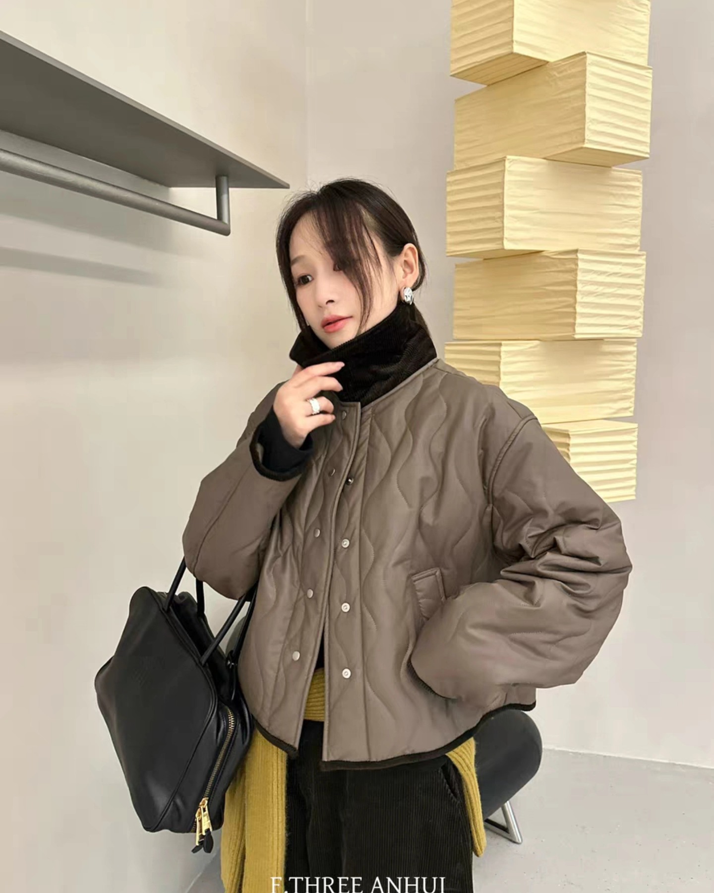 B3217 เสื้อแจคเกตหนังคอปกลูกฟูก