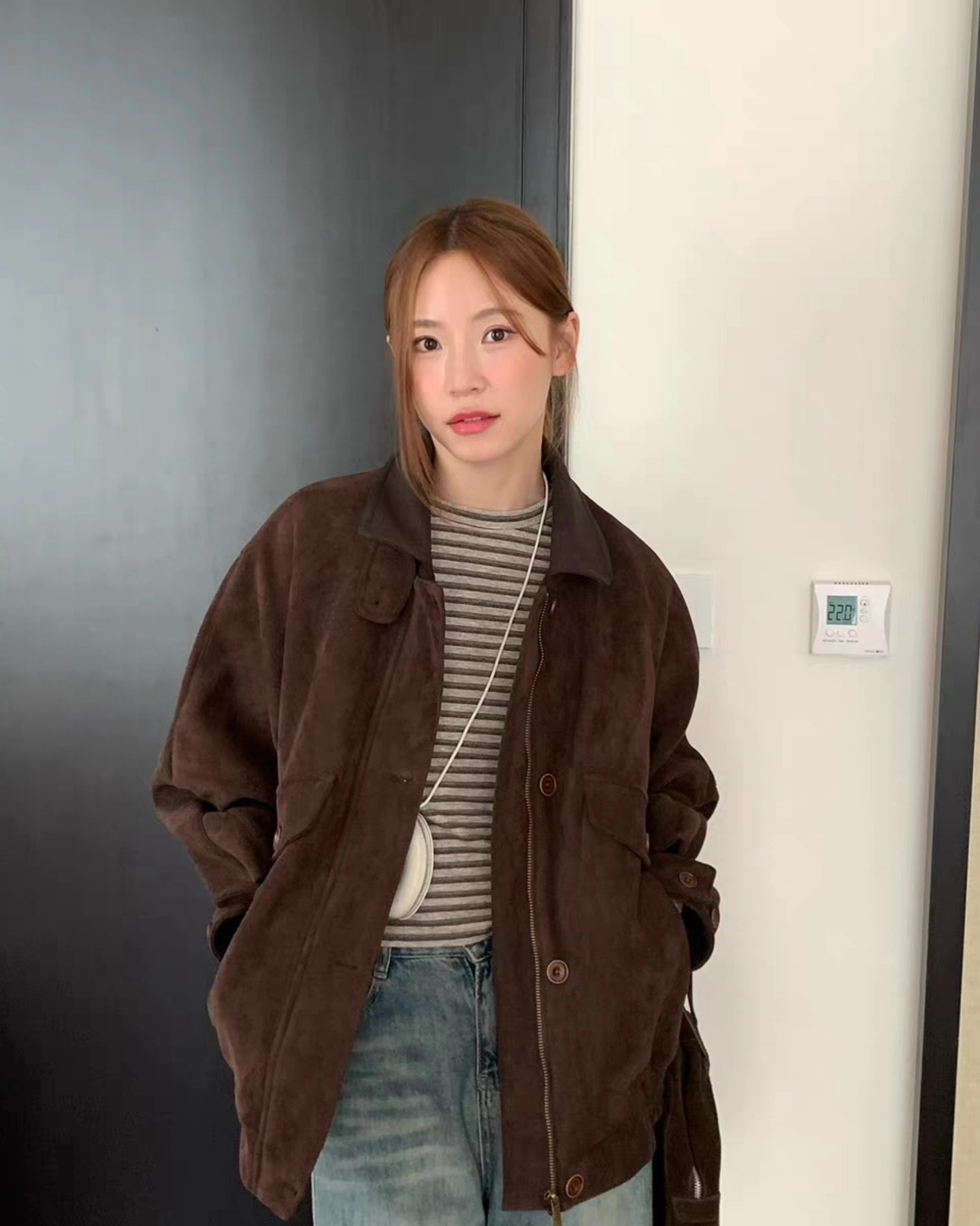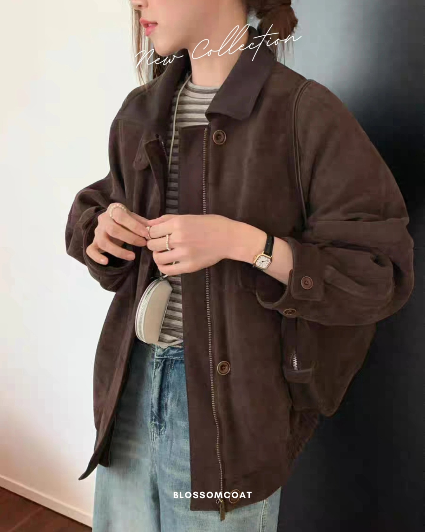 B3218 เสื้อแจคเกตหนังกลับ คอหนัง