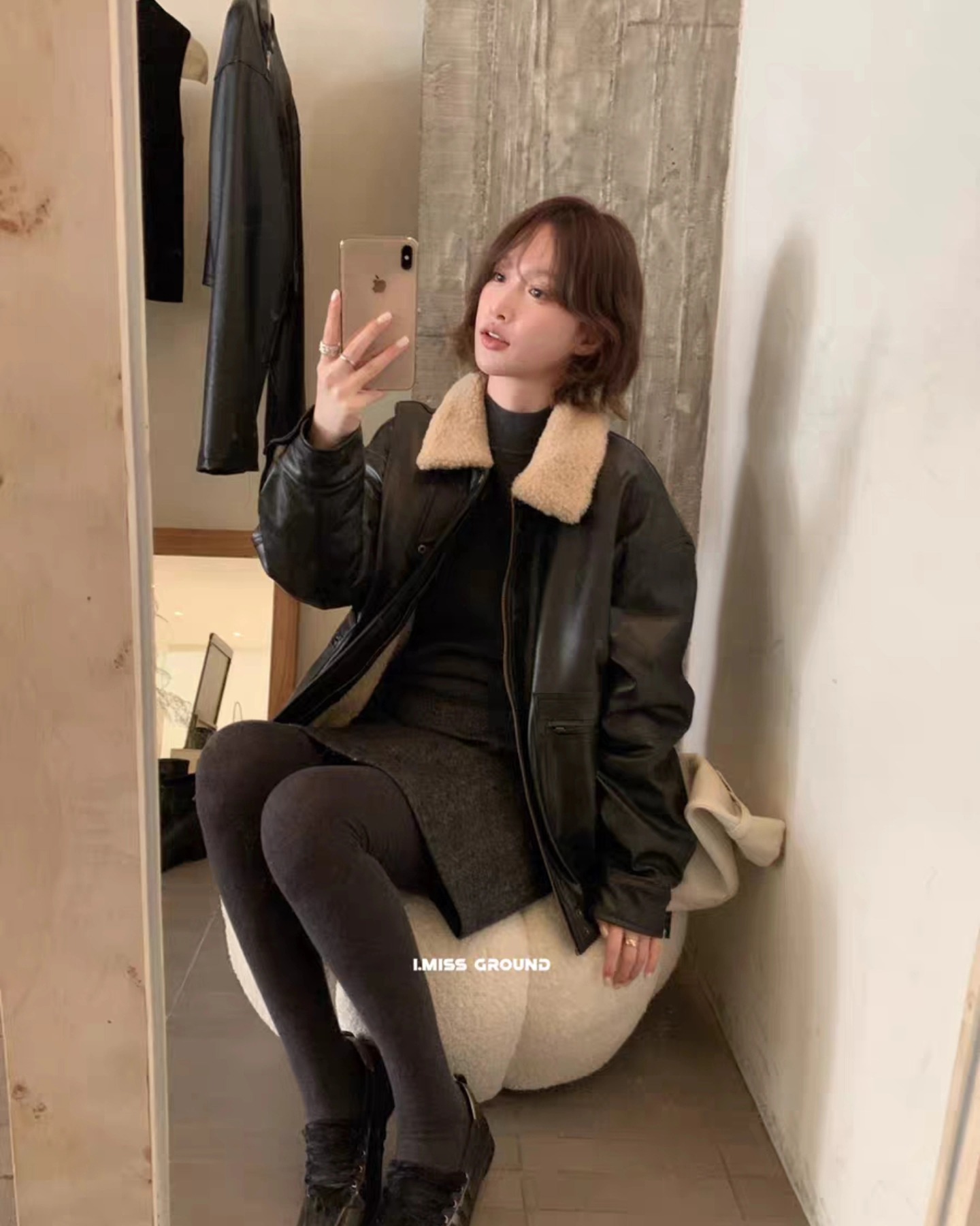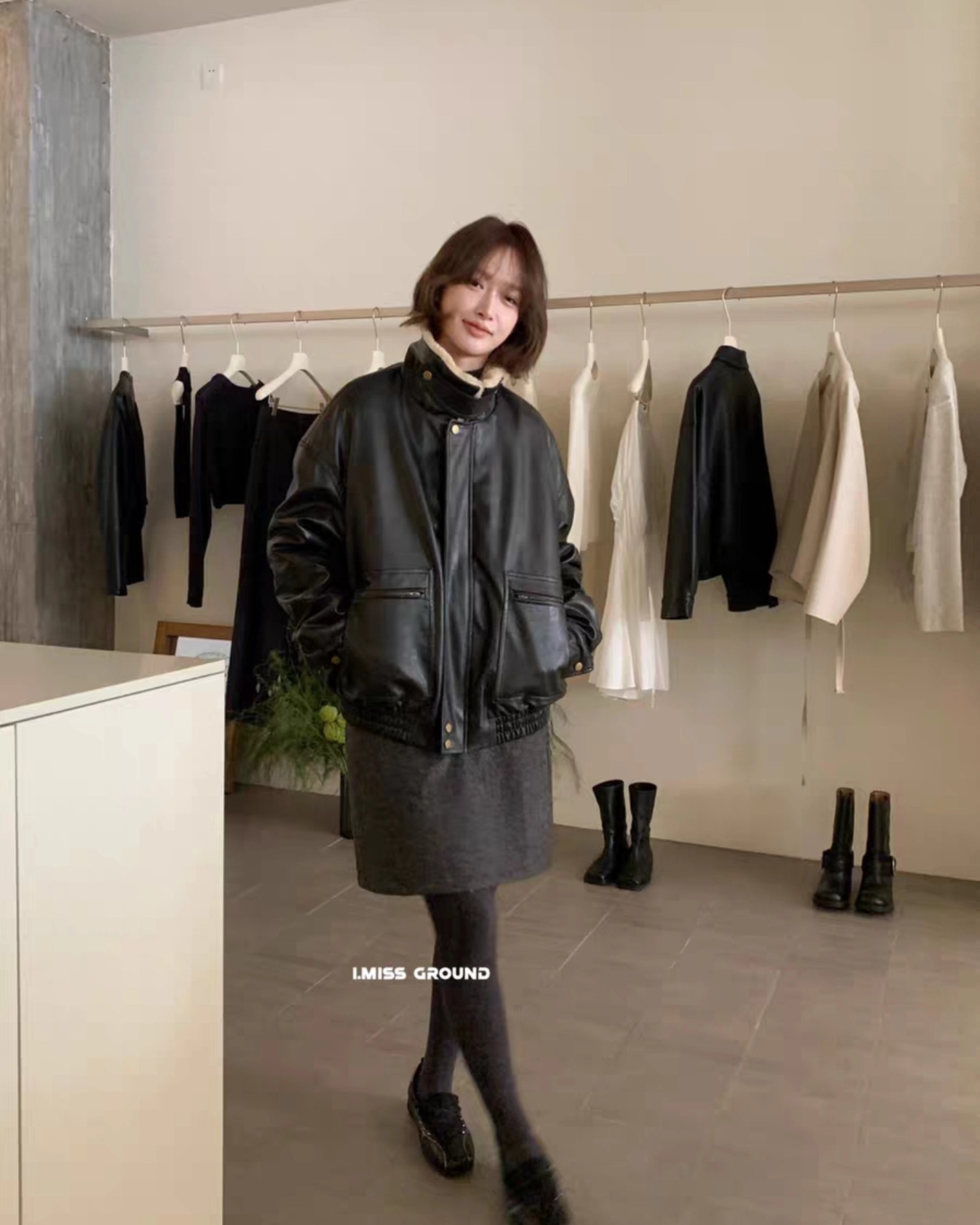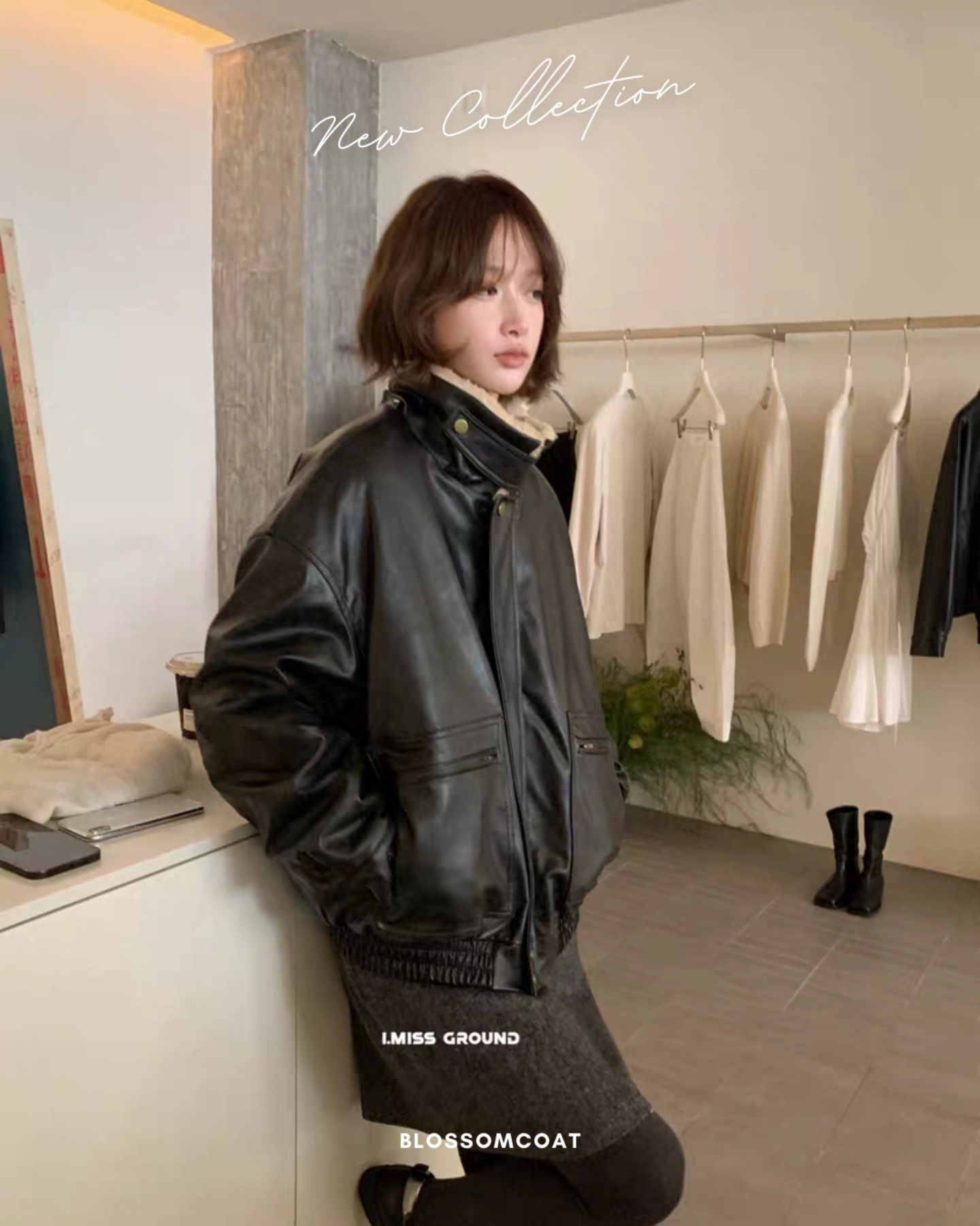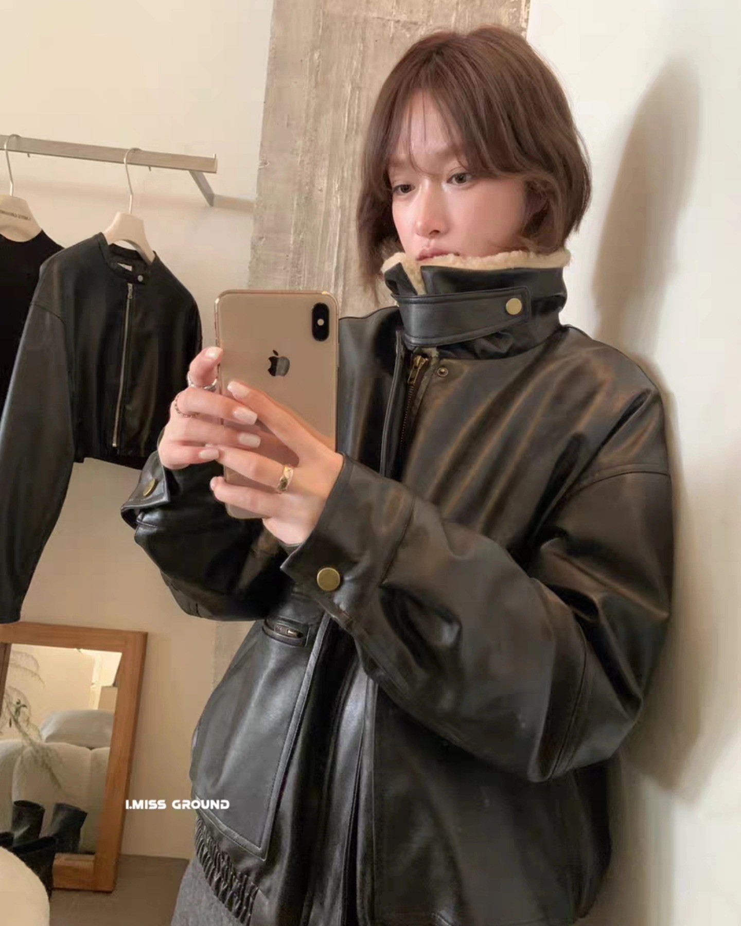 B3222 เสื้อแจคเกตหนังบุขนโอเวอไซ
