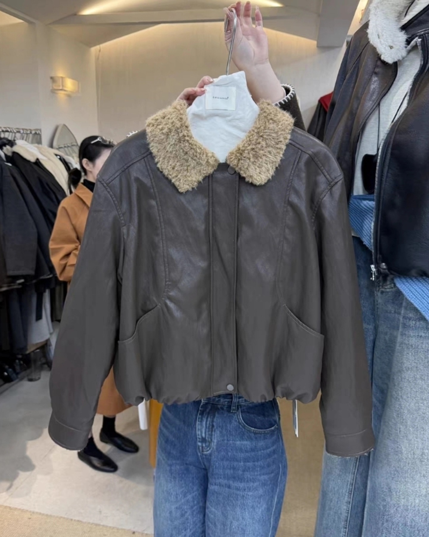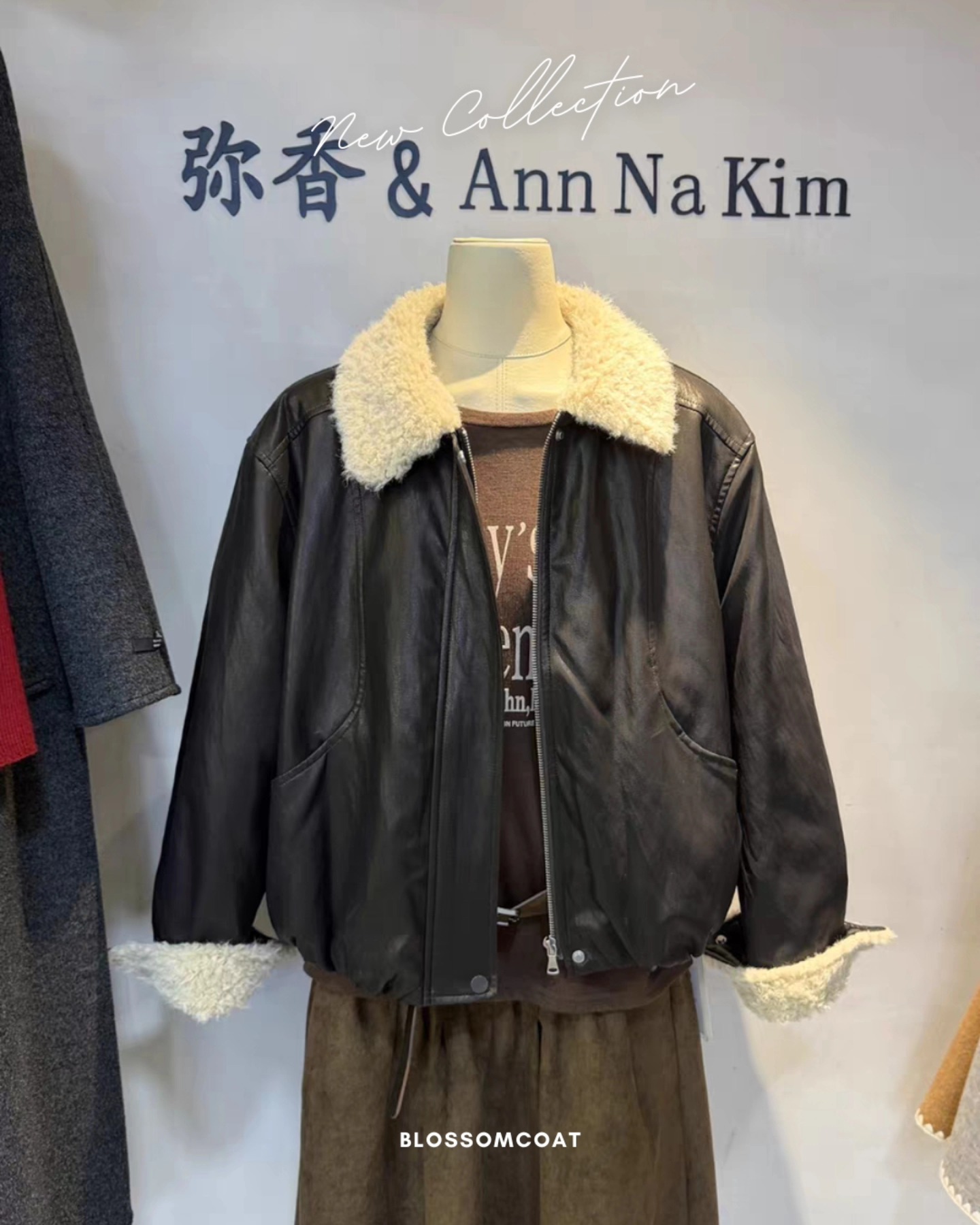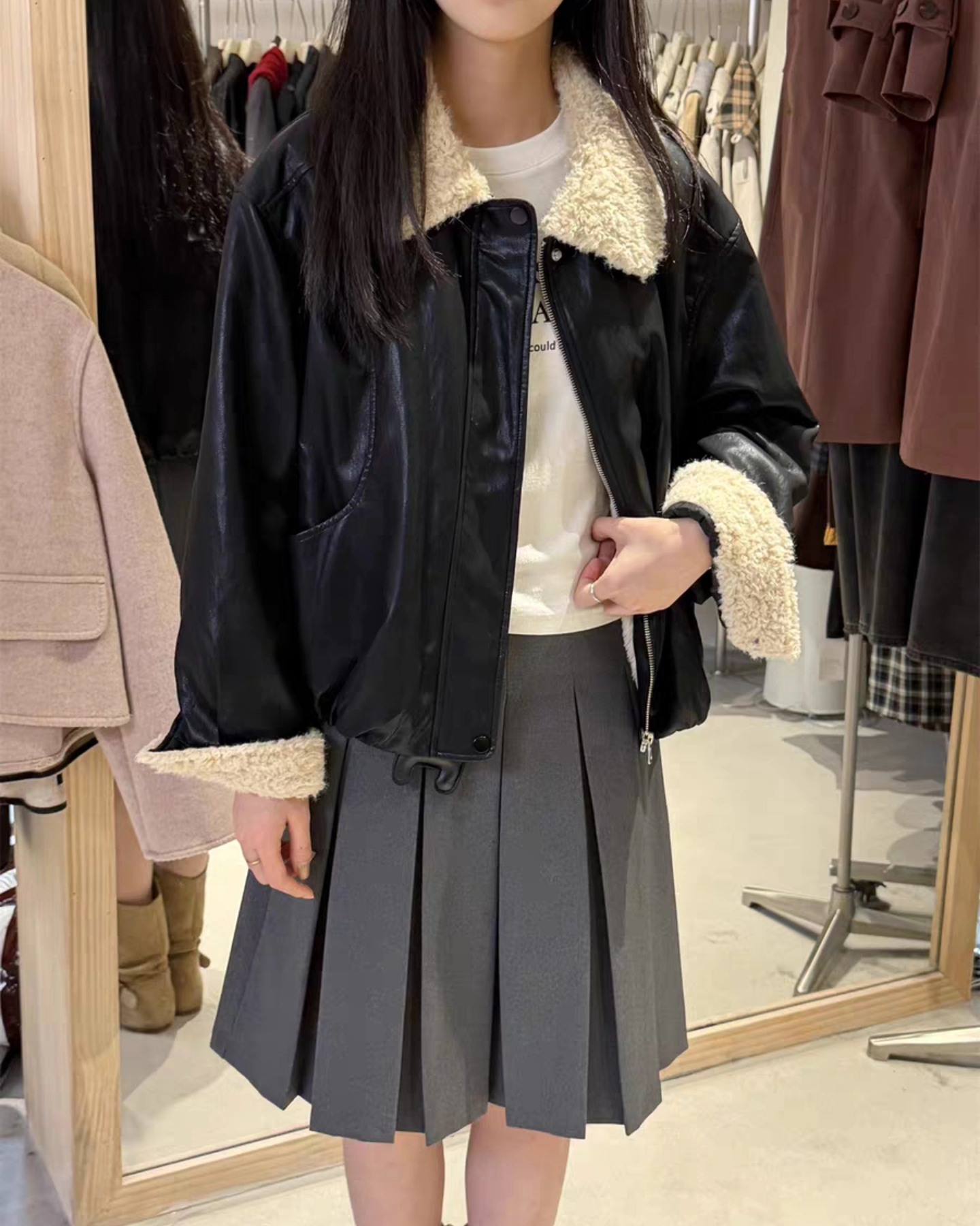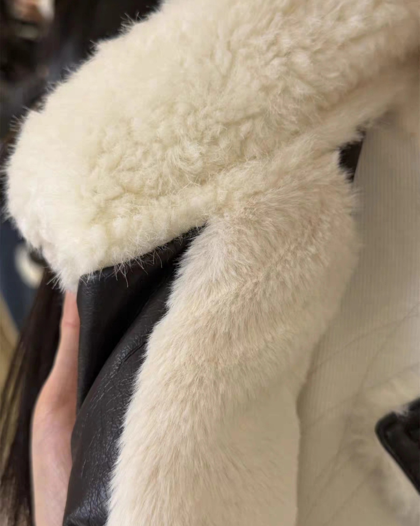 B3231 เสื้อแจคเกตหนังคอปกขน บุขน