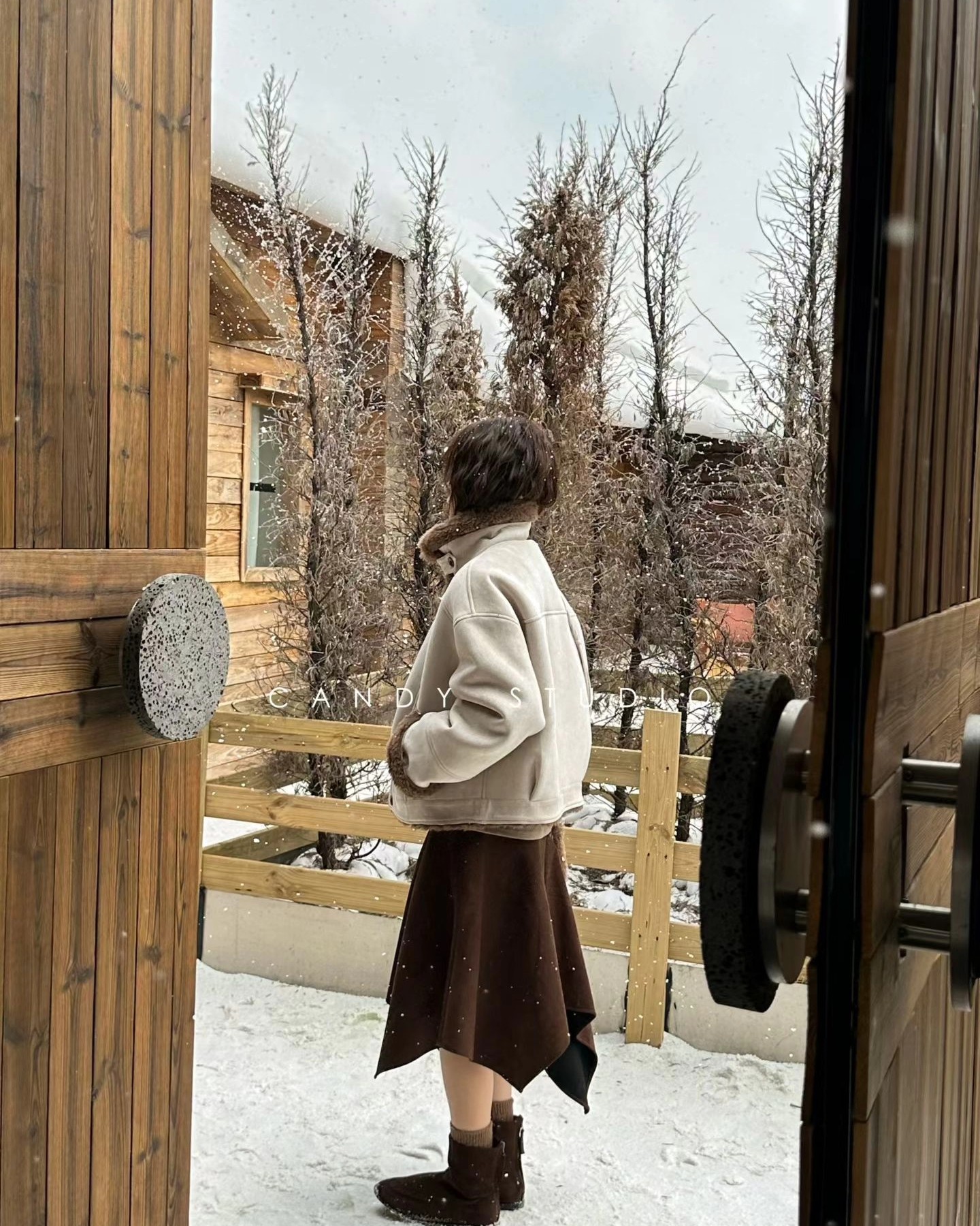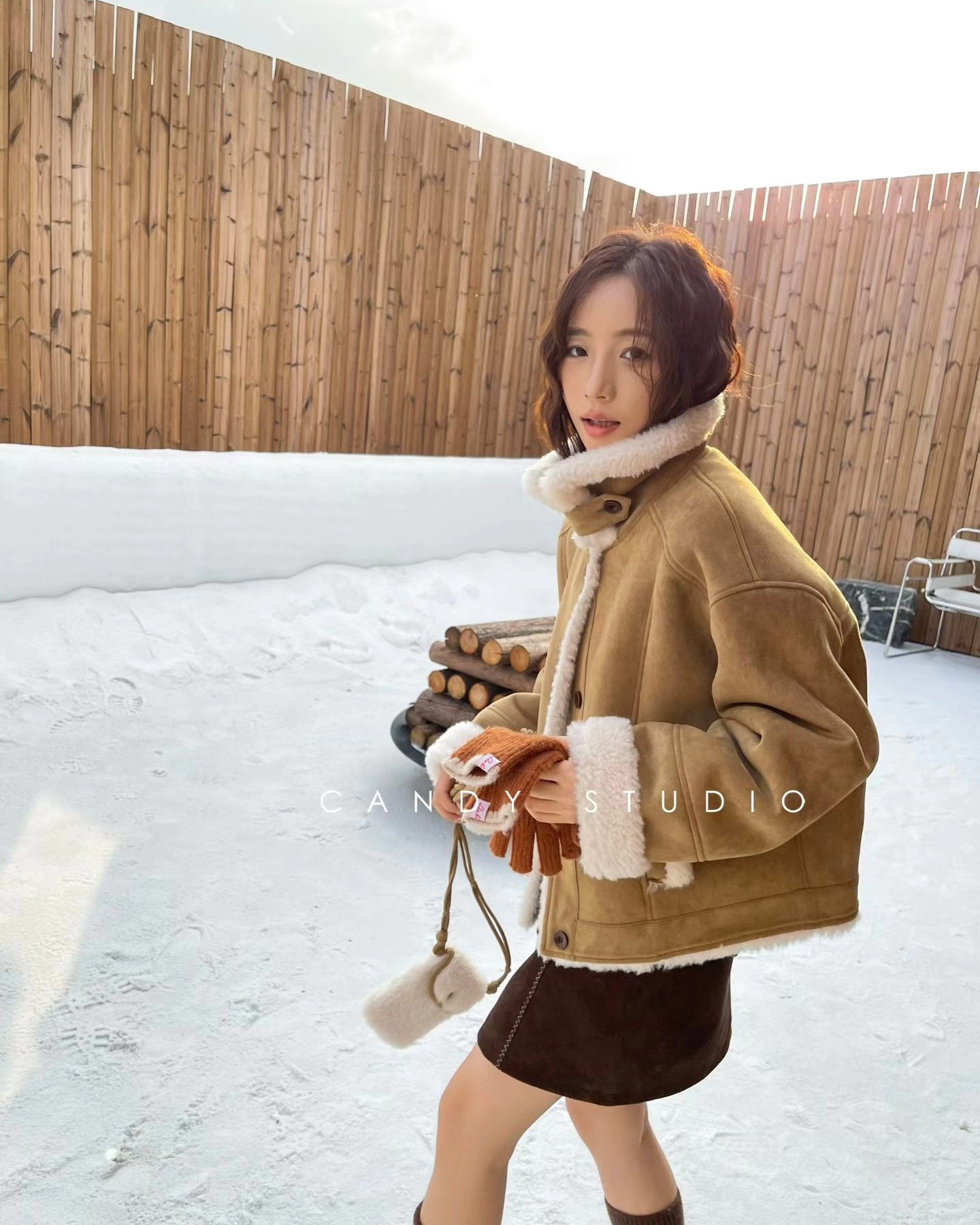 B3244 เสื้อแจคเกตหนังกลับ +กระเป๋า