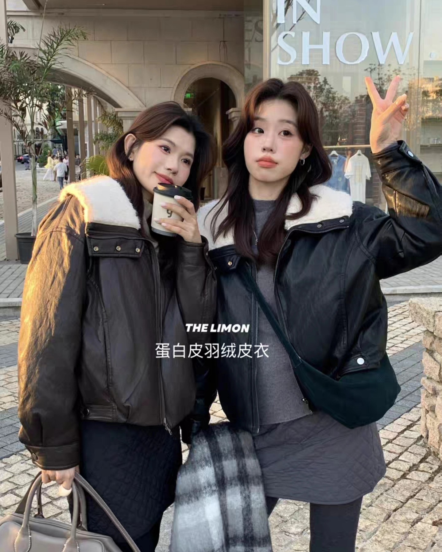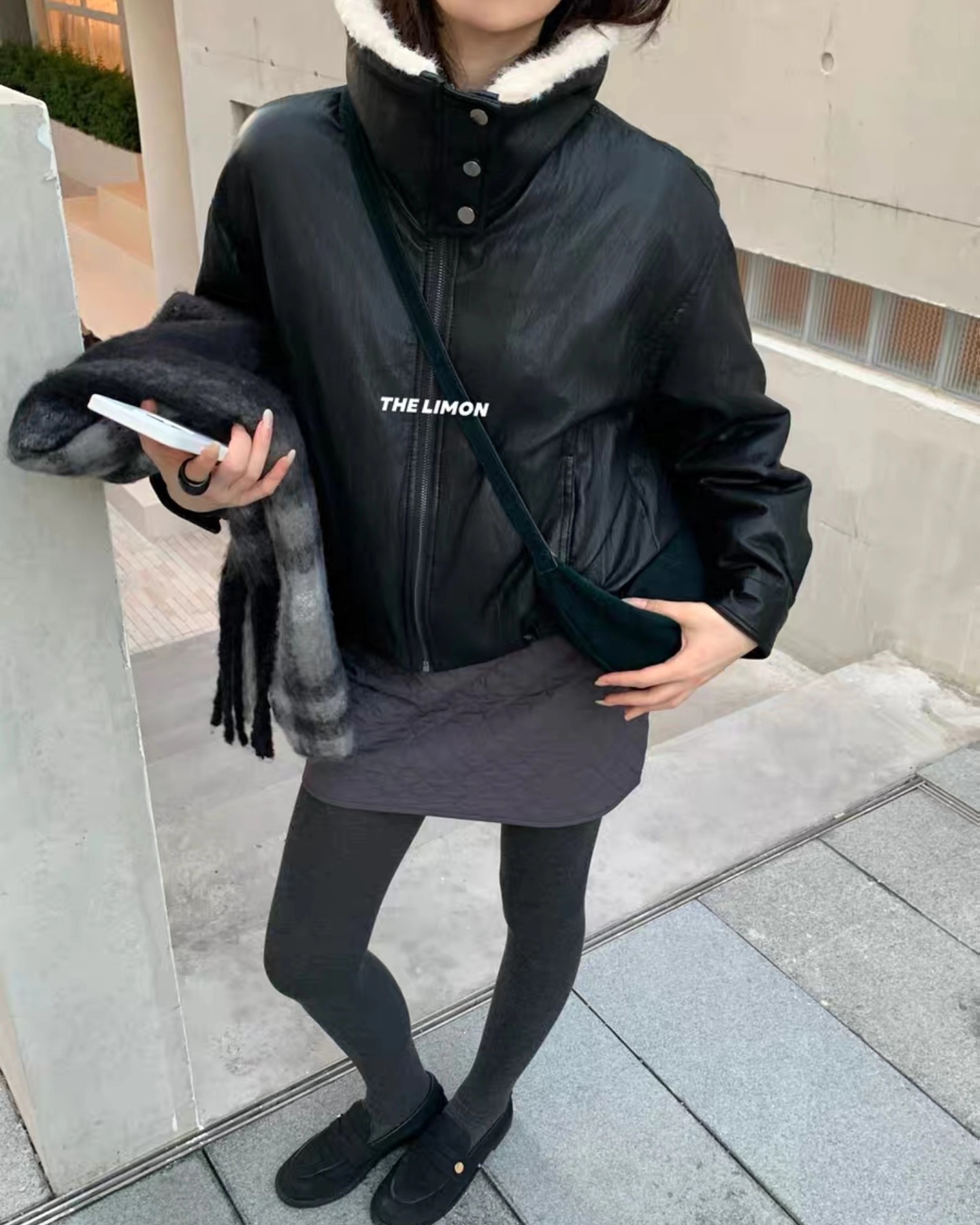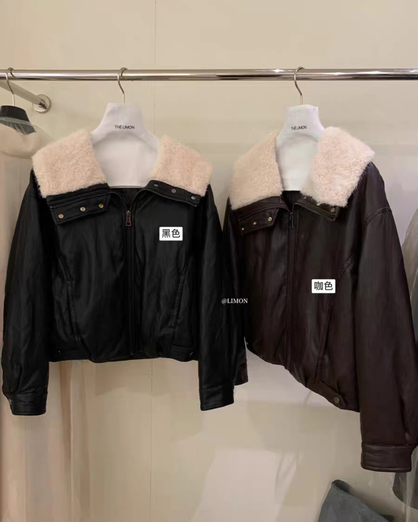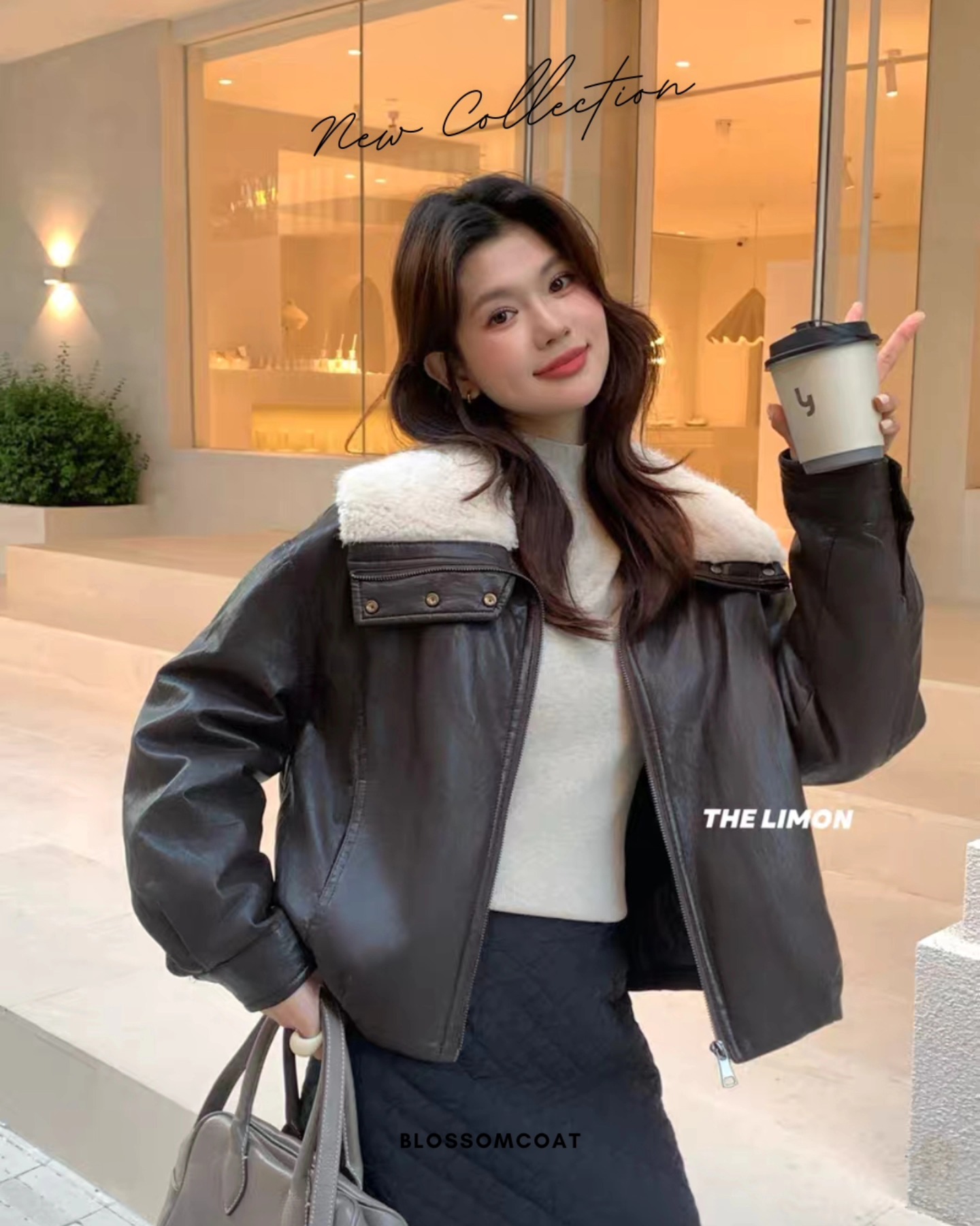 B3245 เสื้อแจคเกตหนัง คอบุขนแกะ