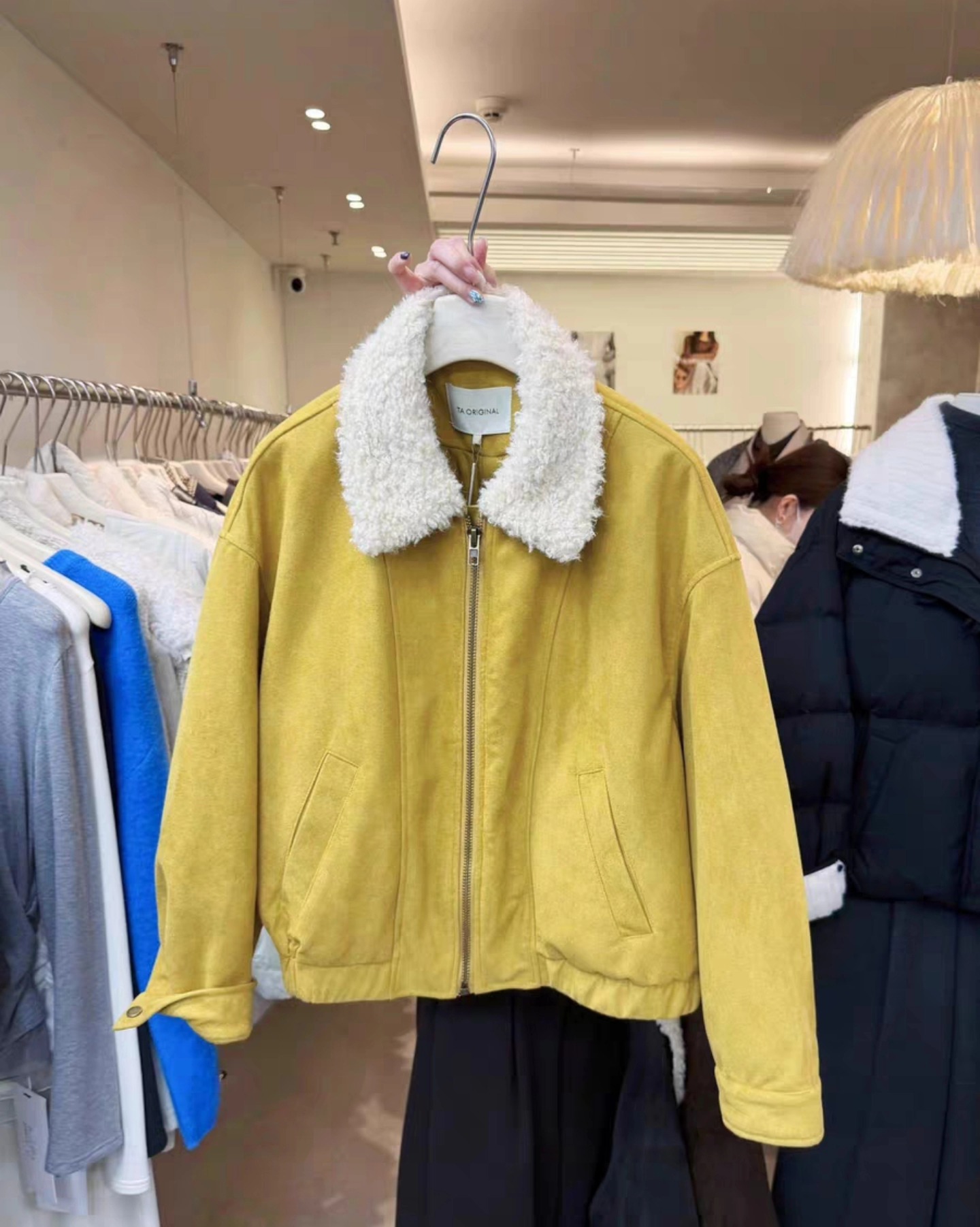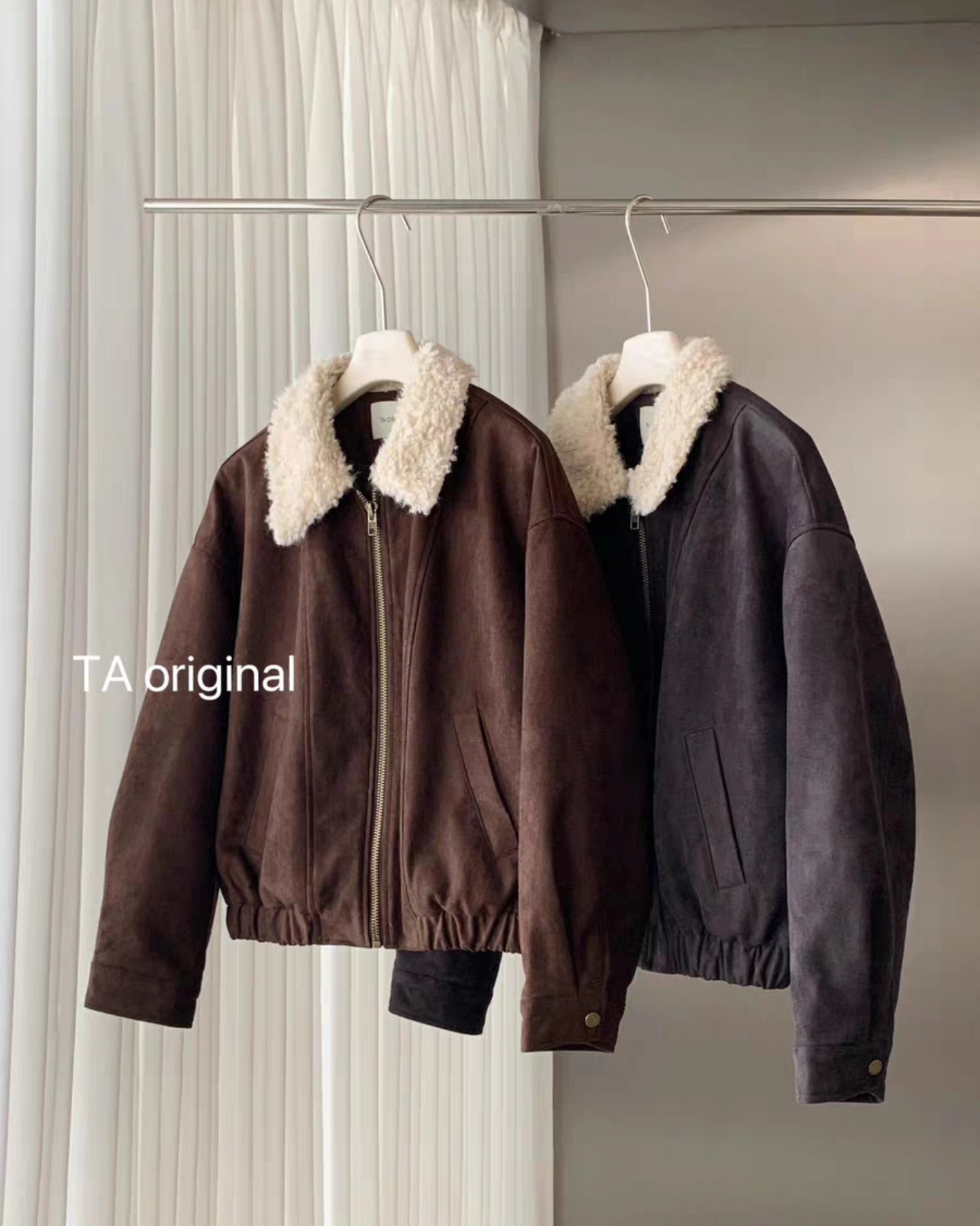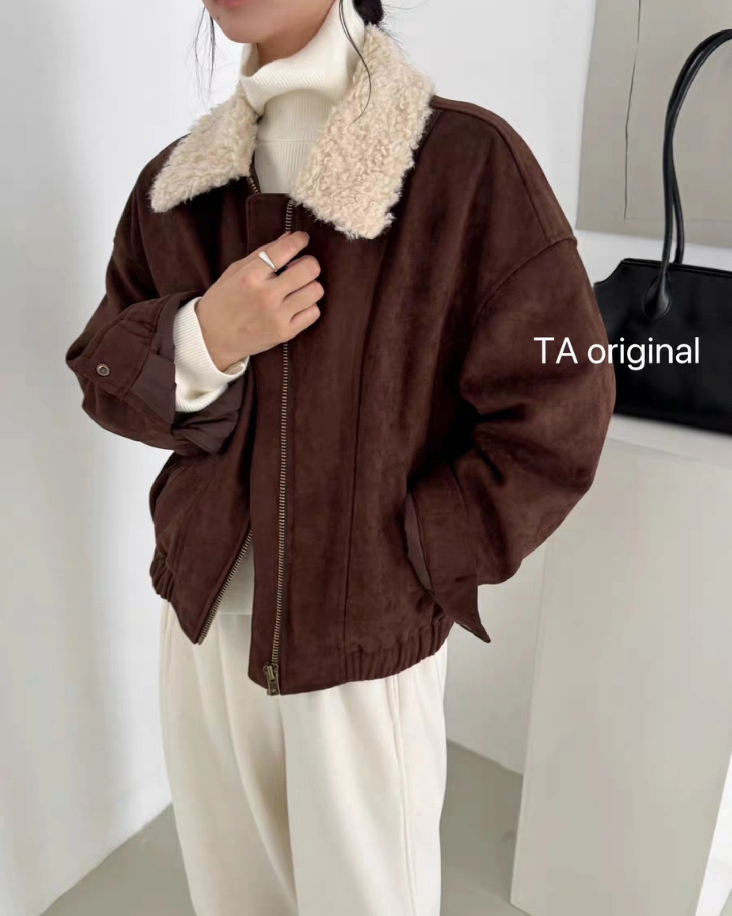 B3246 เสื้อแจคเกตหนังกลับ คอปกบุขน