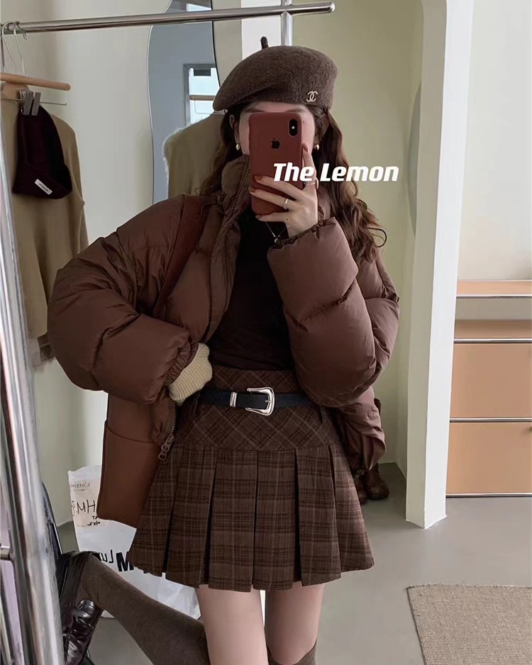 B9213 กระโปรงจีบสั้น ลายสก๊อต