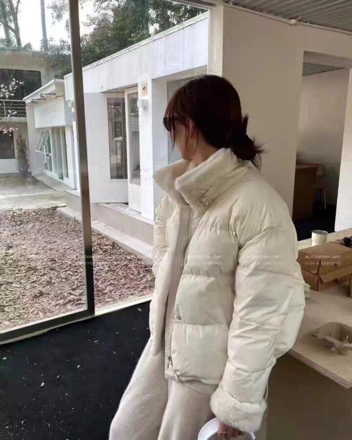 B4152 เสื้อขนเป็ดสั้น ปกขนขาว ปลายแขนขน ALIS มี 4 สี