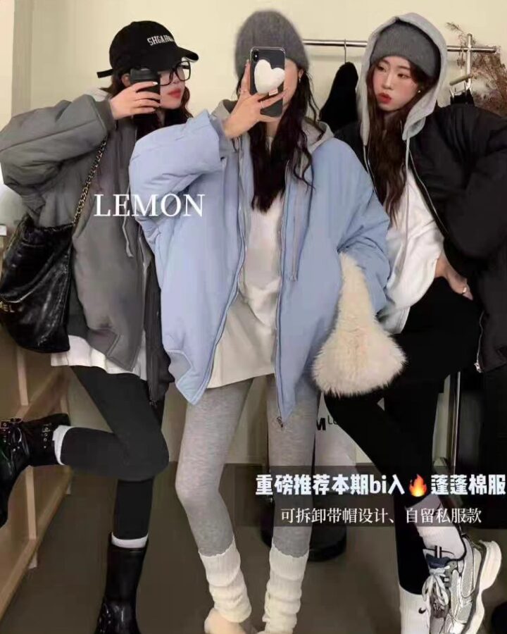 B4153 เสื้อขนเป็ด oversize ฮู้ดเทาถอดได้ THE LEMON มี 5 สี