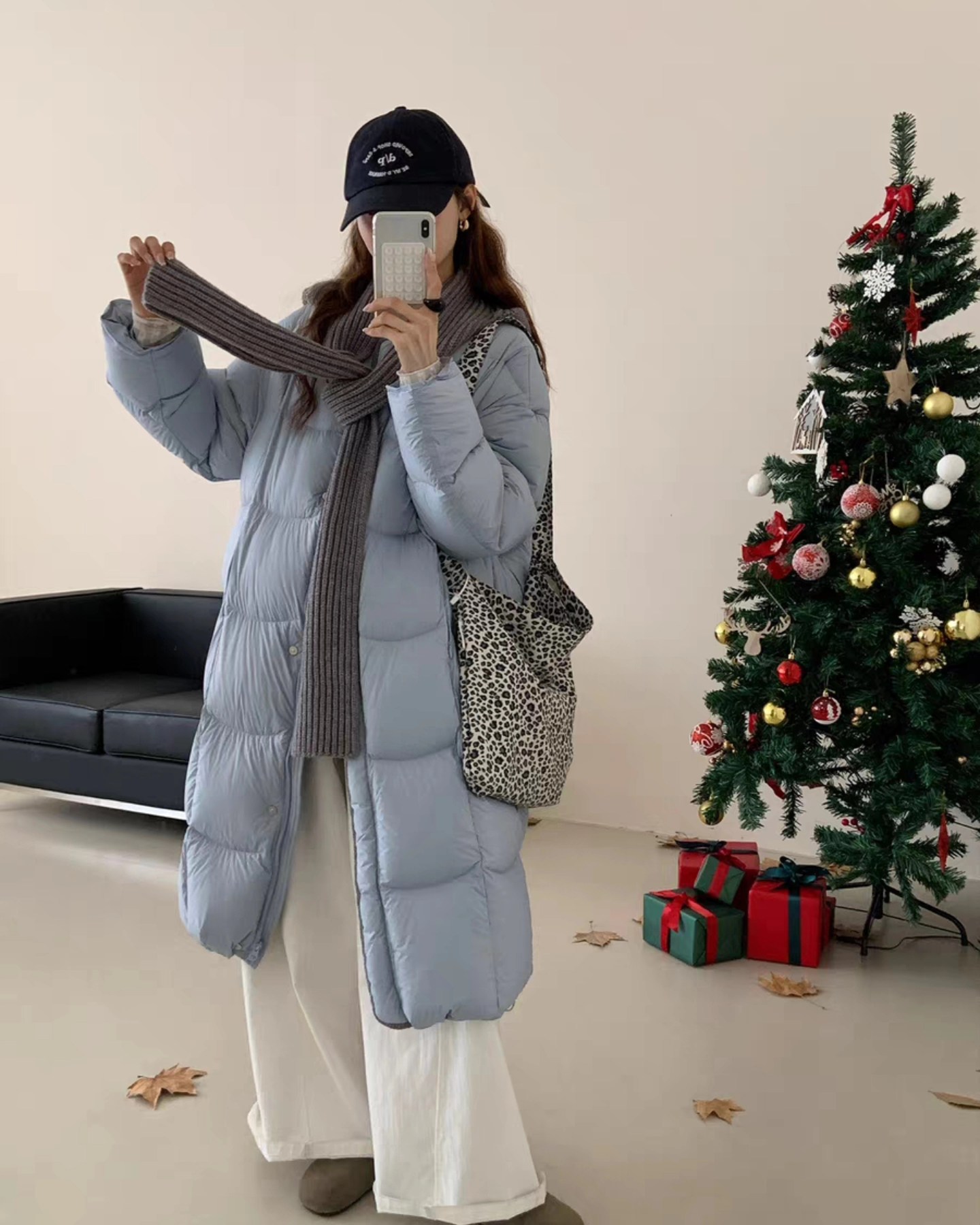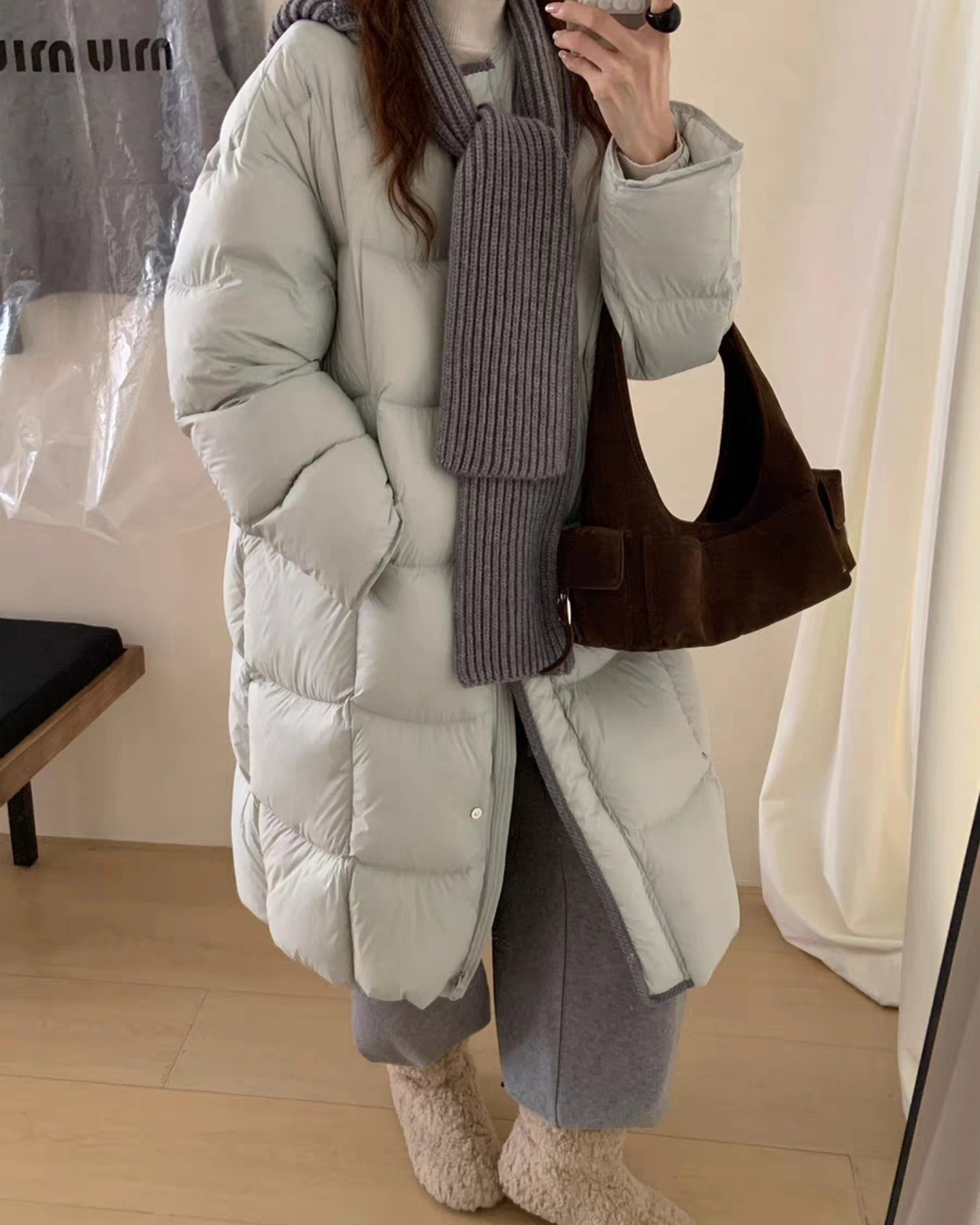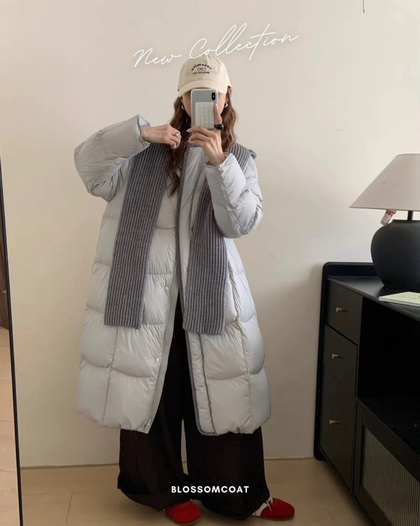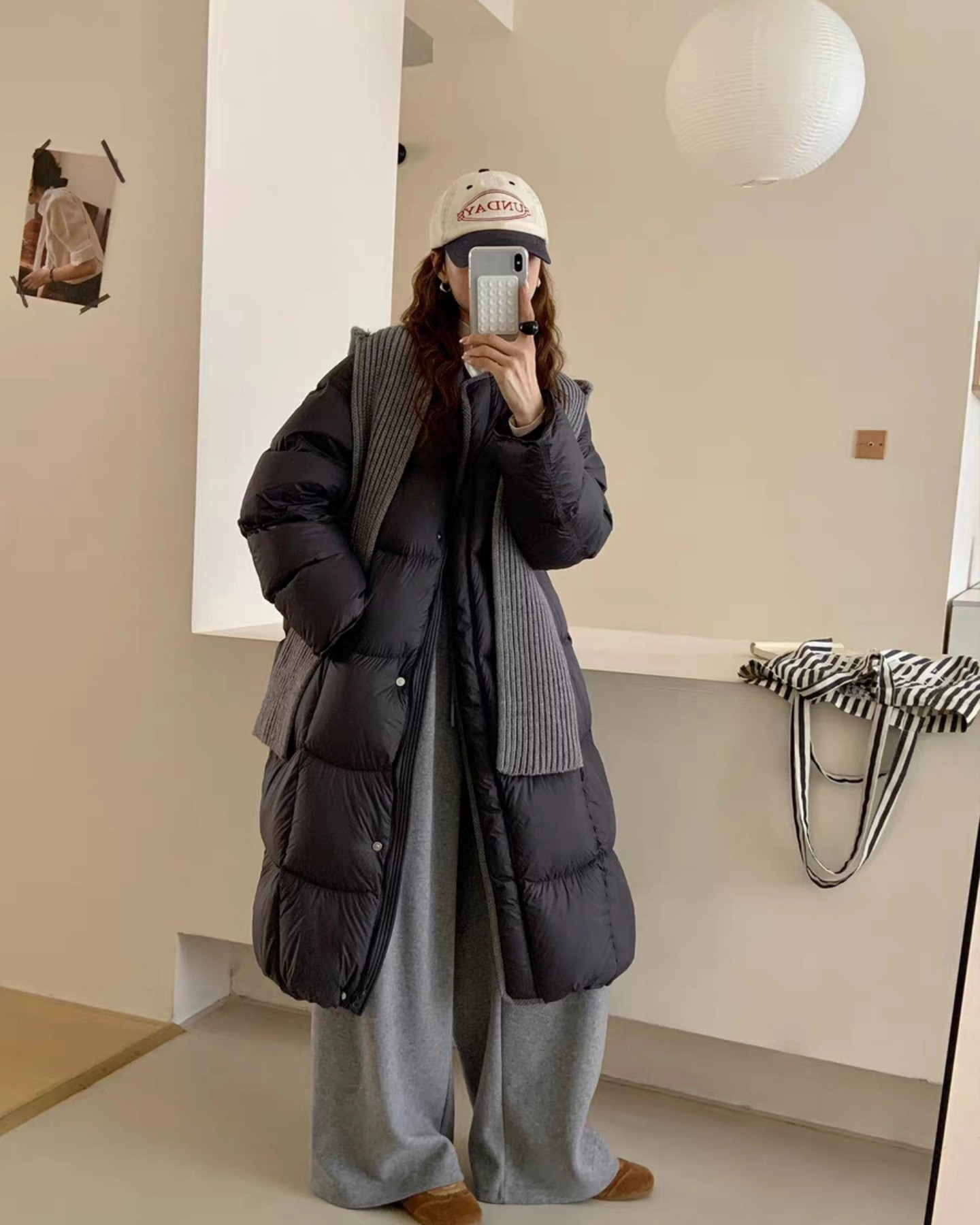 B4256 เสื้อขนเป็ดแบบปล้องคอกลม+ผ้าพันคอหมวกคอกลม