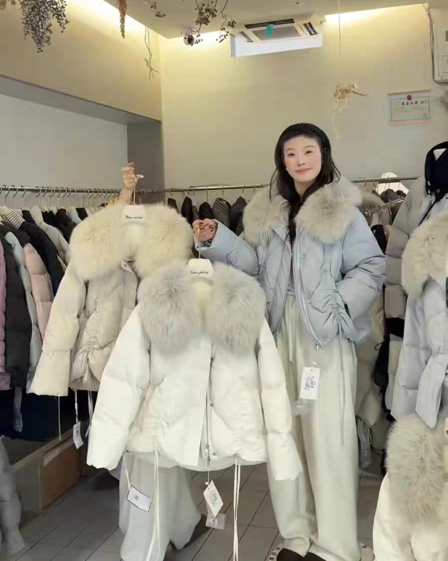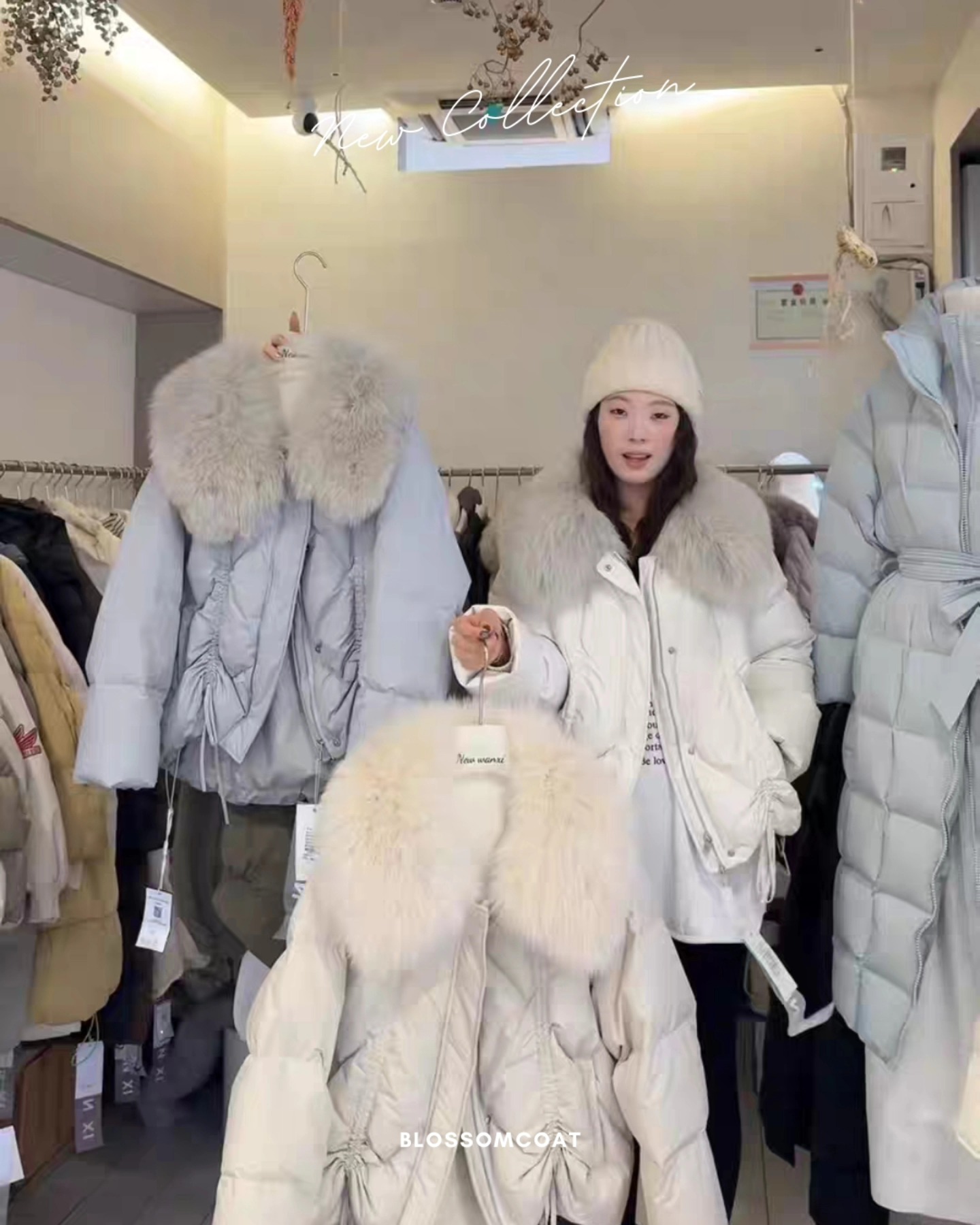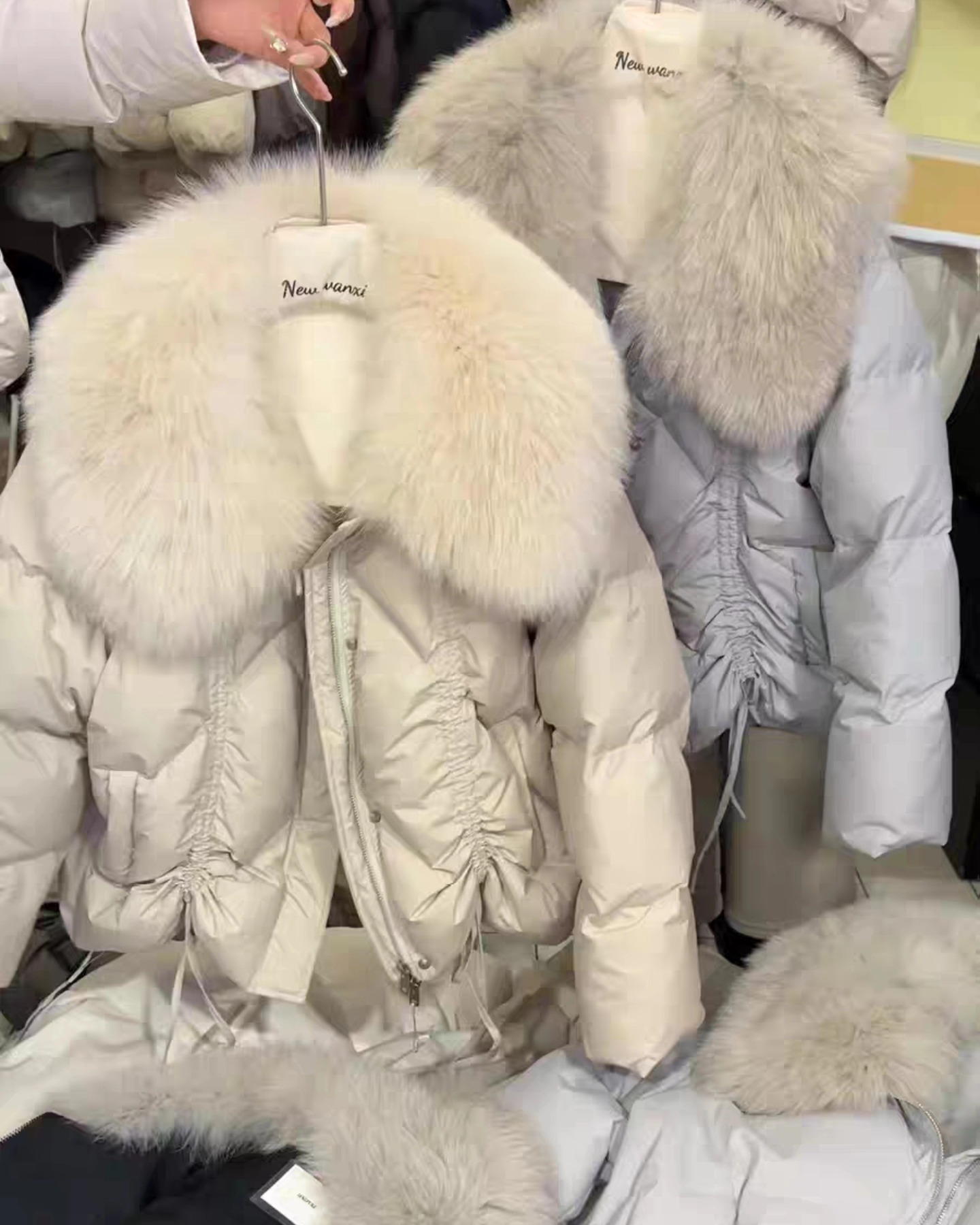 B4260 เสื้อขนเป็ดมีเฟอร์ที่คอ ปลายผูกเชือก