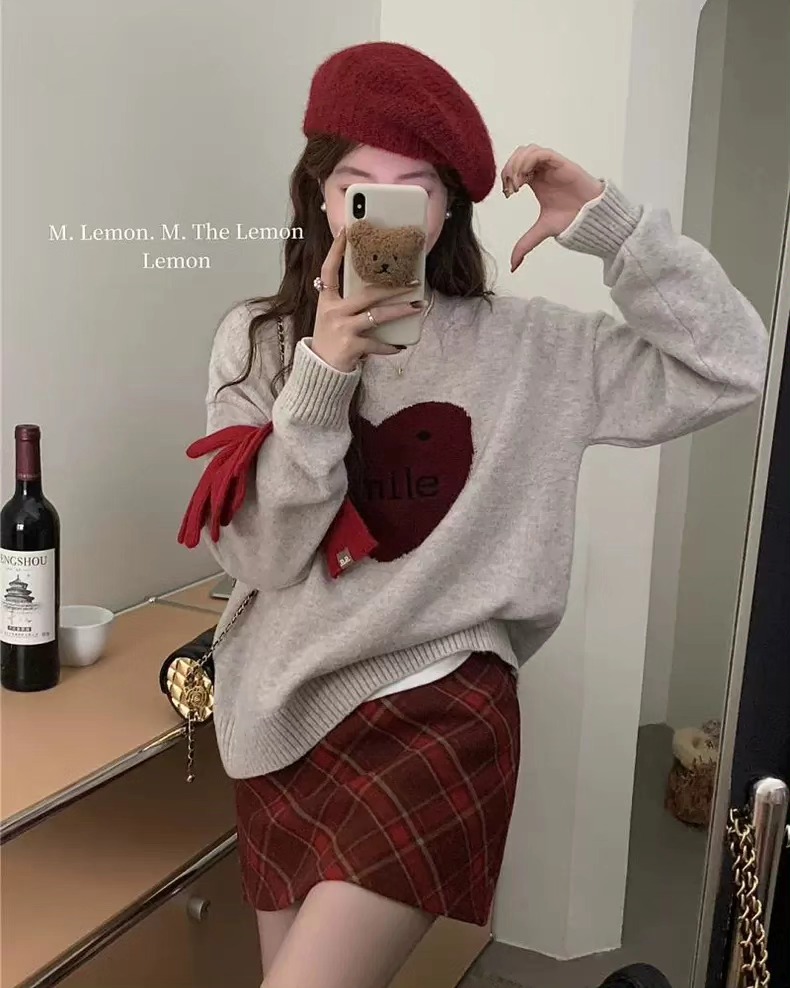 B5210 เสื้อไหมพรม ลายหัวใจ SMILE THE LEMON มี 2 สี