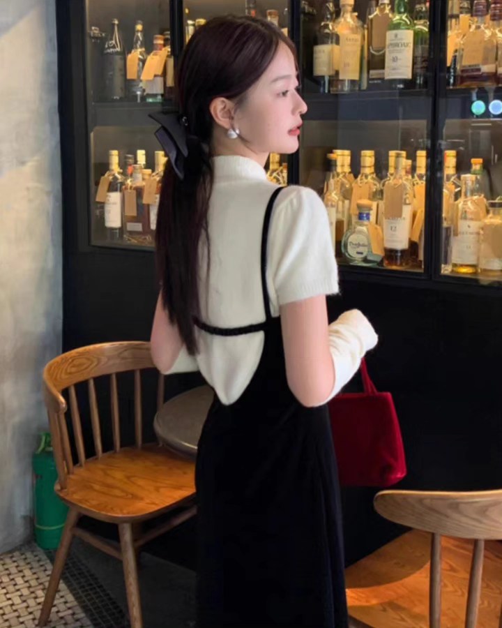B6095 เดรสกำมะหยี่ สายเดี่ยว