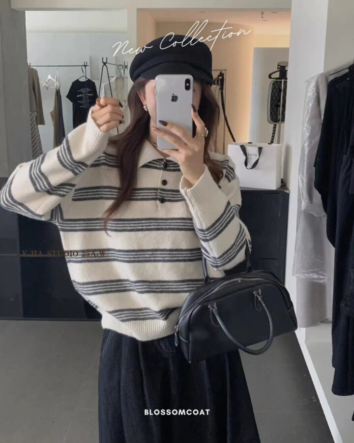 / B5288 เสื้อไหมพรมโปโลลายทาง มี 3 สี