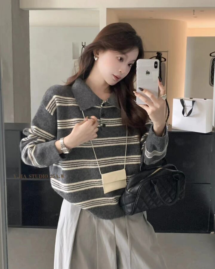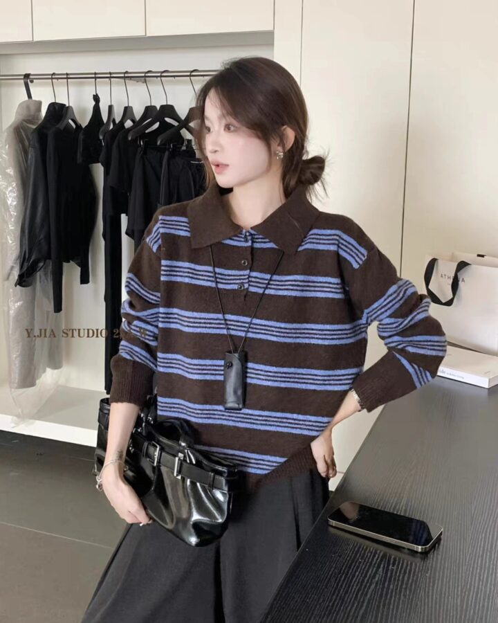B5288 เสื้อไหมพรมโปโลลายทาง มี 3 สี
