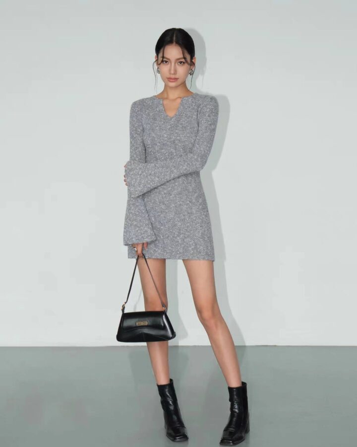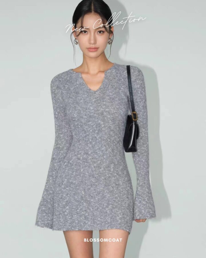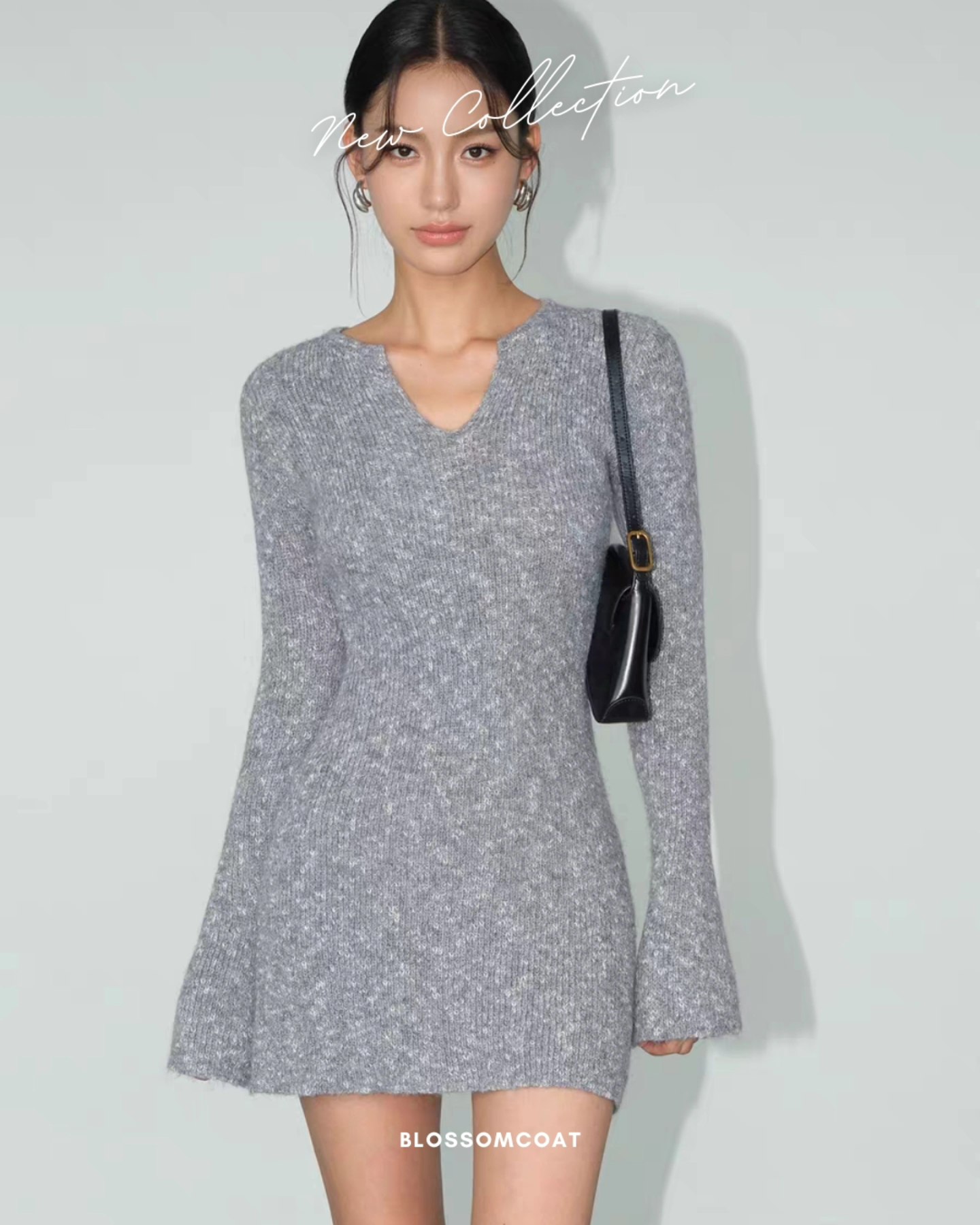 B6100 เดรสไหมพรมสั้น มี 2 สี