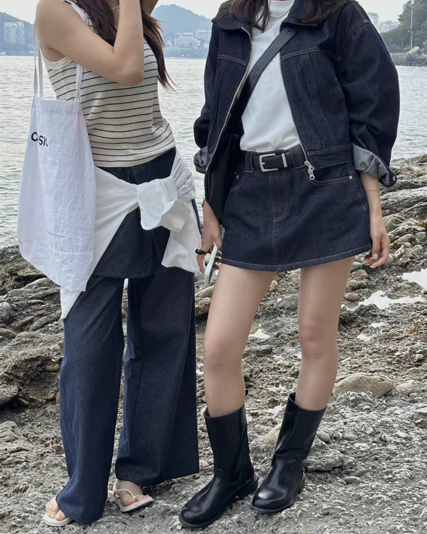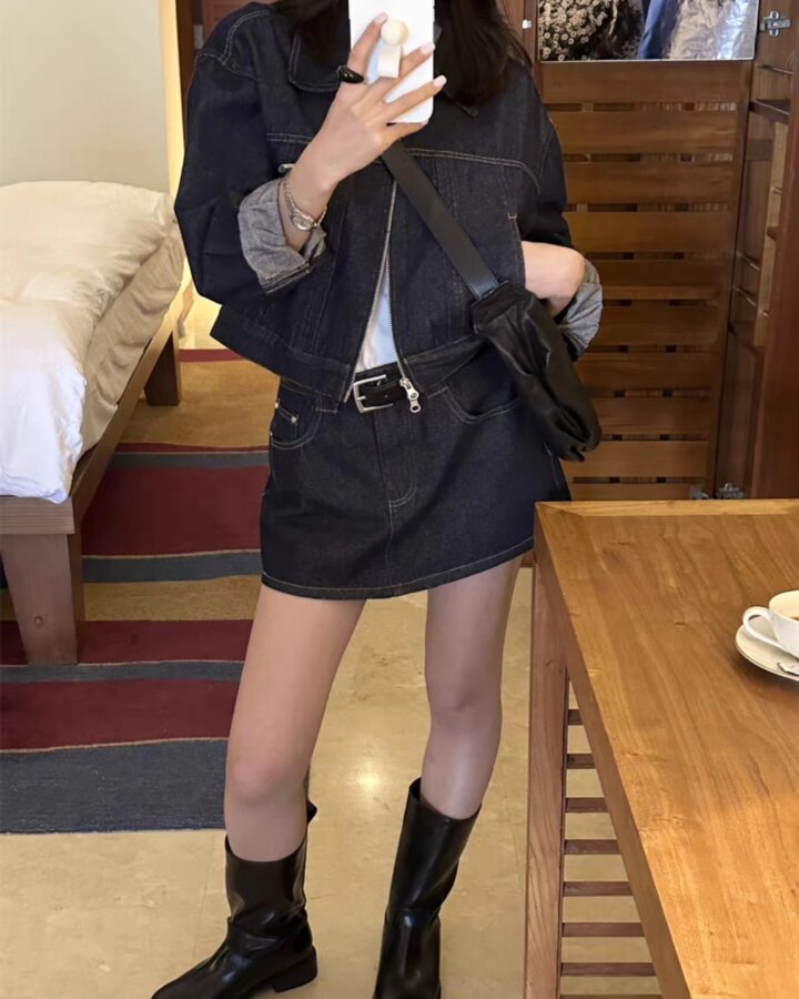 B7120 ชุดเซ็ทยีน เสื้อ+กระโปรง (ไม่รวมเข็มขัด)
