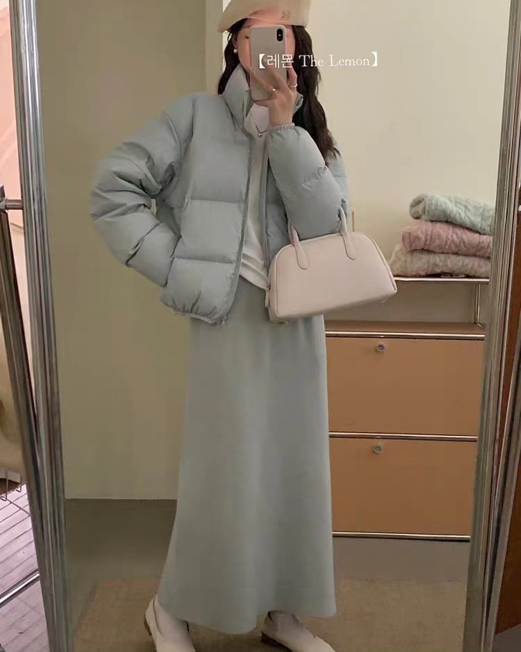 B4138 เสื้อคร๊อปขนเป็ด เอวจั๊ม