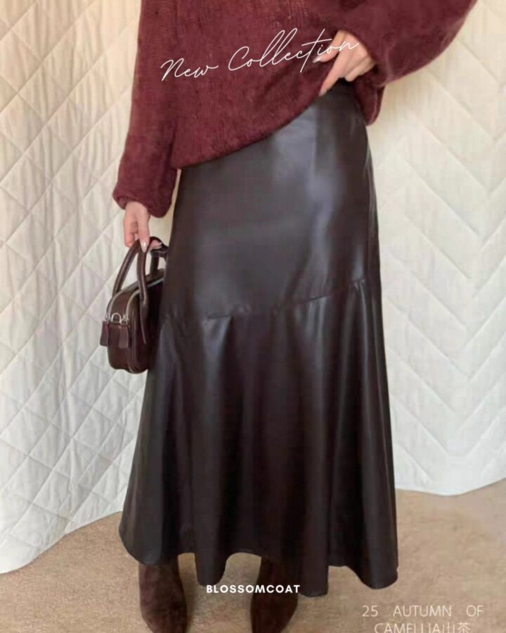 B7099 Set jacket หนัง + กระโปรง มี 2 สี
