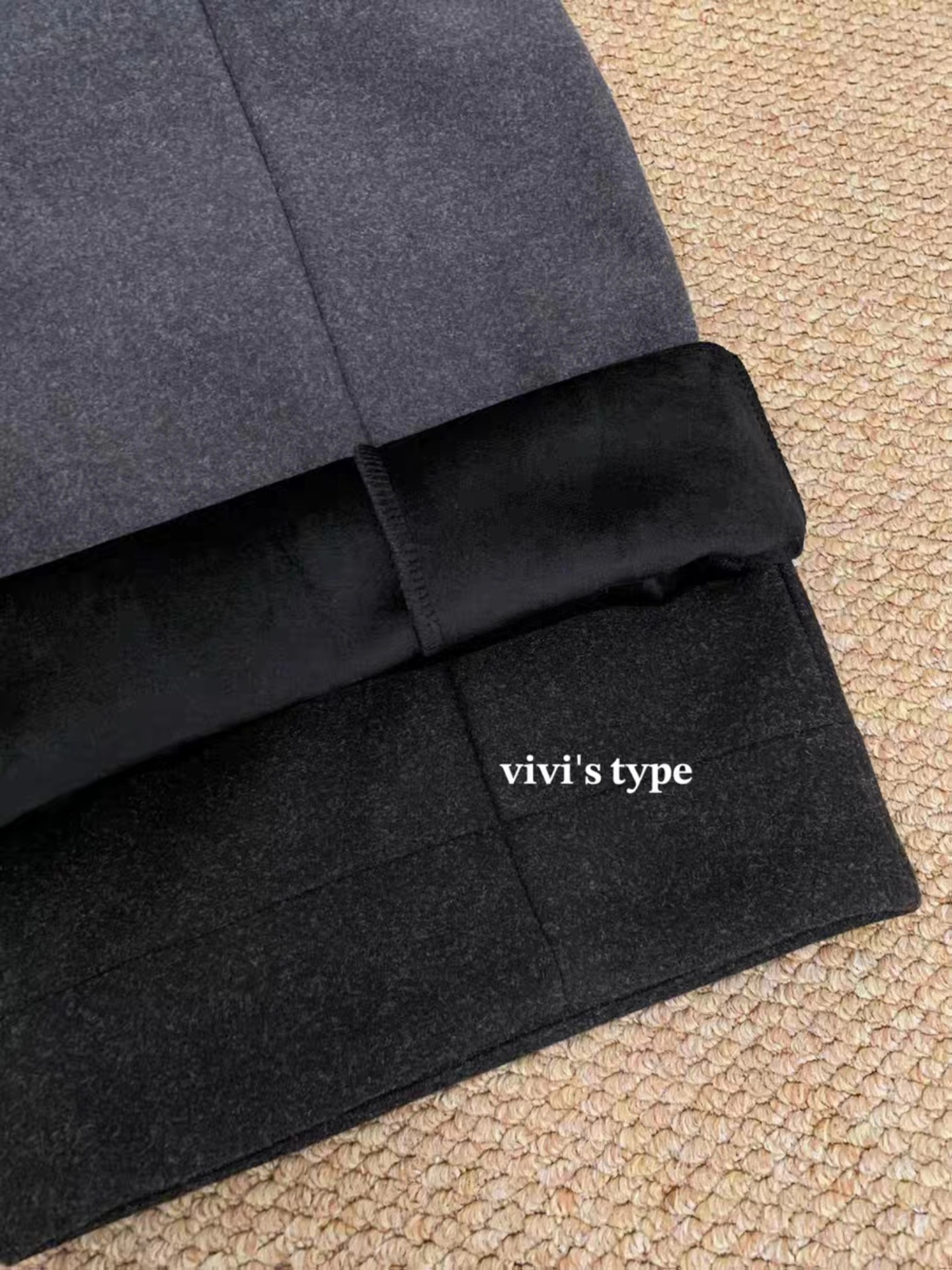 B9322 กางเกงผ้าวูล บุขนเอวยางยืด