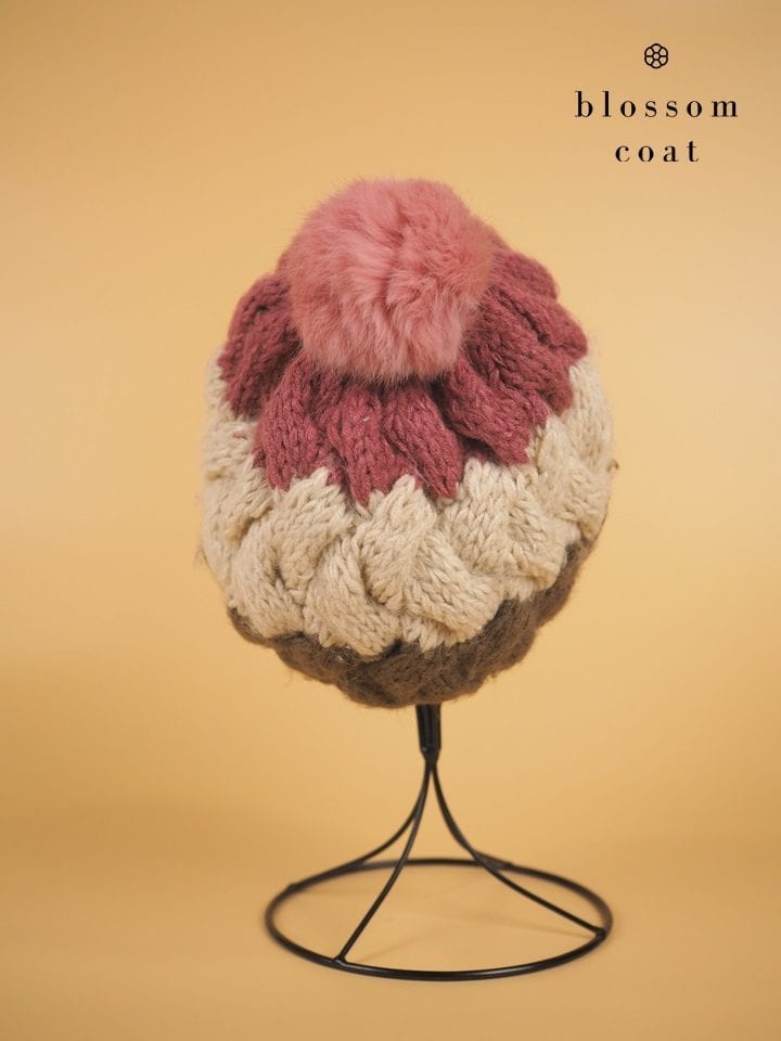 A2007 หมวกไหมพรมทรงเห็ด สีชมพู